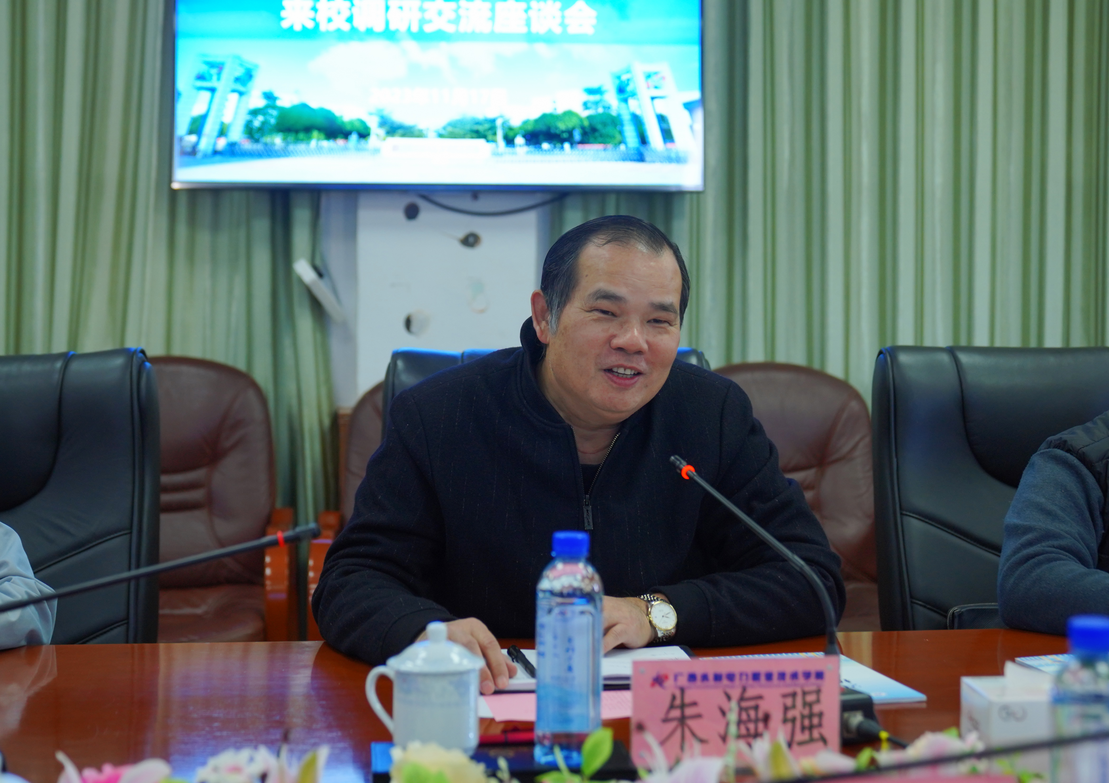 11月17日上午,广西物流职业技术学院朱海强院长一行到学校参观交流,学校校长李林、副校长蒋文沛以及党委办公室、财务处、资产管理中心、审计室等相关部门负责人陪同参加。