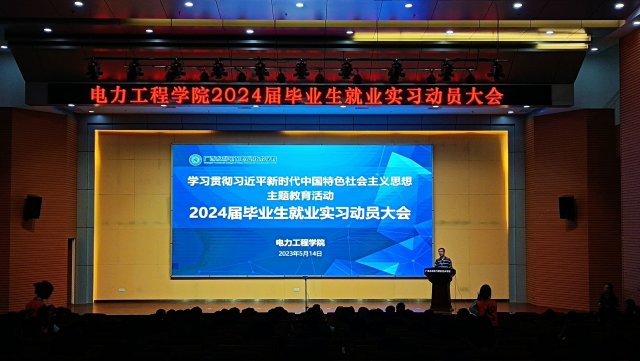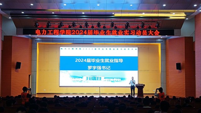 [本网讯]5月17日晚上,电力工程学院在里建校区青年之家报告厅、教学楼一楼报告厅、二楼报告厅、阶梯102教室开展学习贯彻习近平新时代中国特色社会主义思想主题教育——2024届毕业生就业实习动员大会。电力工程学院院长左江林、党总支书记罗宇强、副院长谭振宇及21级全体师生参加会议,会议由就业干事赵莹主持。