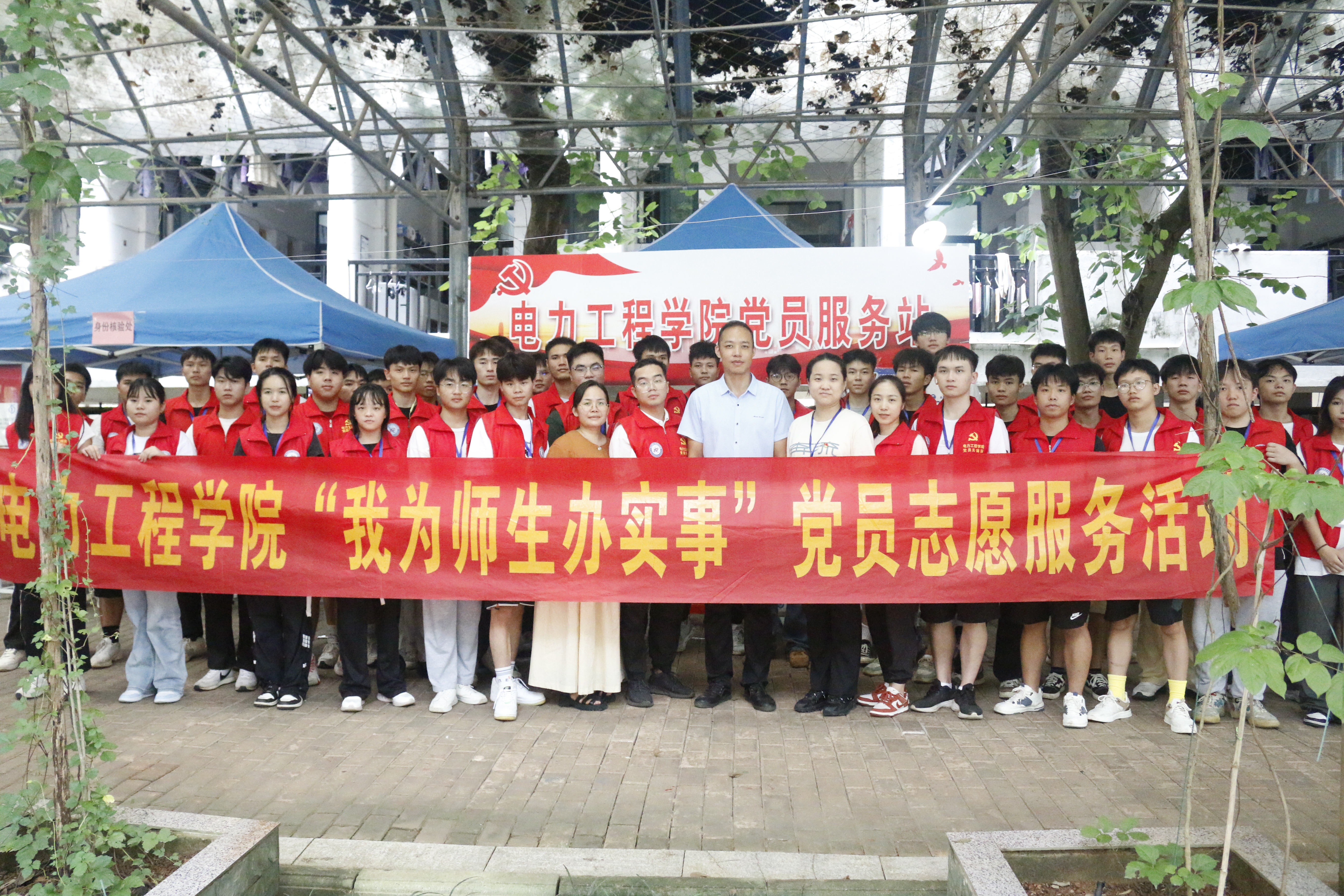 迎新当日,电力工程学院学生党支部组织教师党员、入党积极分子分别在校门口、校道、馨园6栋、馨园11栋等地方设立指引站点,在迎新接待点设立党员服务站,轮班安排人员对新生进行路途引导、问题答疑、维持秩序,实现报到流水线畅通。参加迎新工作的党员、入党积极分子身着党员红色小马甲,亮出党员身份,展示党员风采,勇担党员责任,以身作则,勇当先锋,在迎新接站、宿舍指引、秩序维护、咨询服务、办理手续等各项流程中为新生提供热情周到的服务,成为了迎新站点一道靓丽的红色风景线。