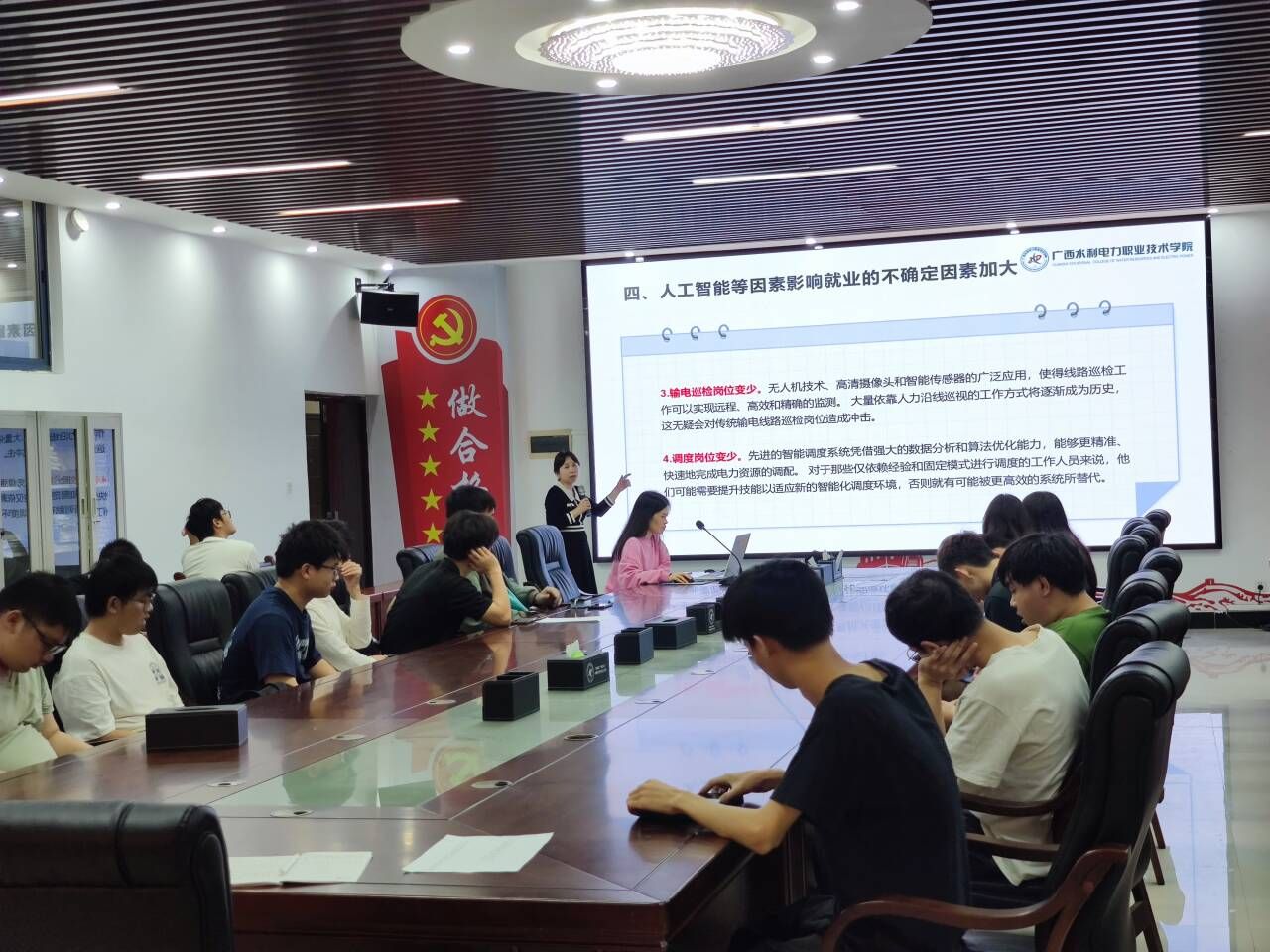 [本网讯]3月27日,电力工程学院“蕴电”辅导员工作室、学生党支部联合学校招就处党支部,在里建校区电力实训楼A206成功举办“雷锋精神引航 就业之路启航”就业指导座谈会。此次活动特别邀请学校招就处招生科科长唐珍主讲,来自不同学院的2023级、2024级在校学生代表参加了座谈。