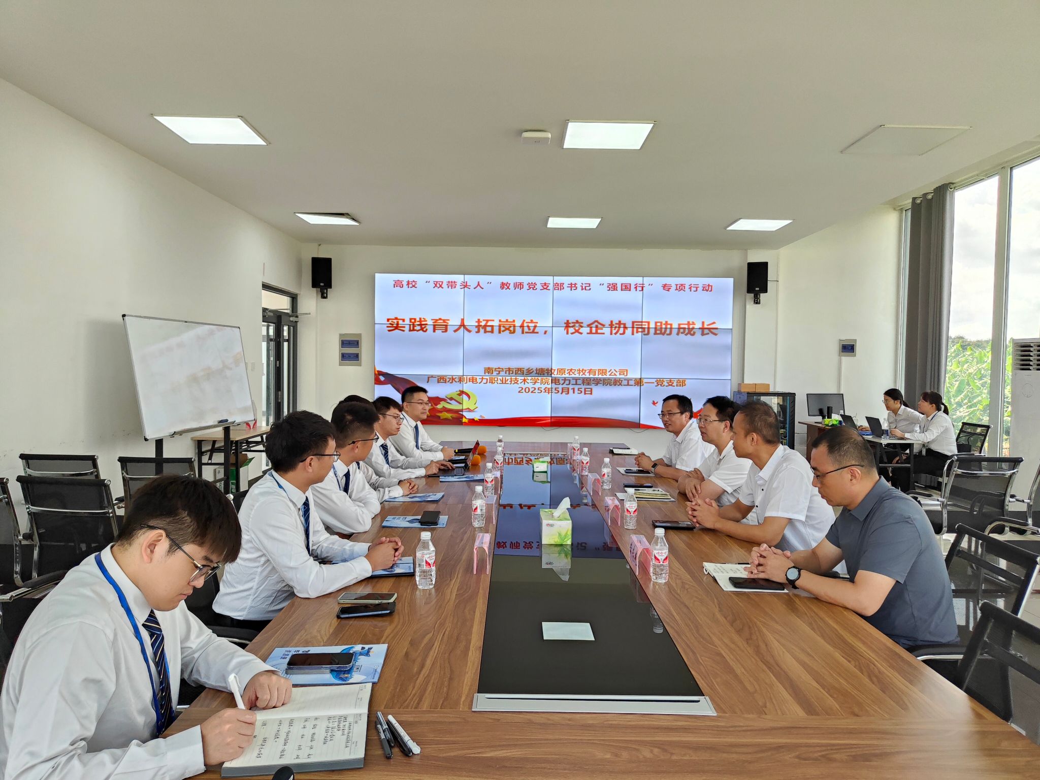 座谈会上,双方明确以“党建校企合作”模式,开展“红色课堂进企业”“党员技术攻关小组”等活动,将党建与企业生产、学校教学深度融合。计划每季度联合开展主题党日活动,组织校企党员围绕智能化养殖技术难题、人才培养方案优化等课题研讨,以党建引领业务发展。在实践育人方面,校企双方计划共建实践教学基地,涵盖智能养殖系统开发、能源管理等领域,共同制定实践课程标准,组建由企业技术骨干与学校教师构成的“双导师”团队,通过项目化学习,让学生在真实企业环境中锤炼专业技能。