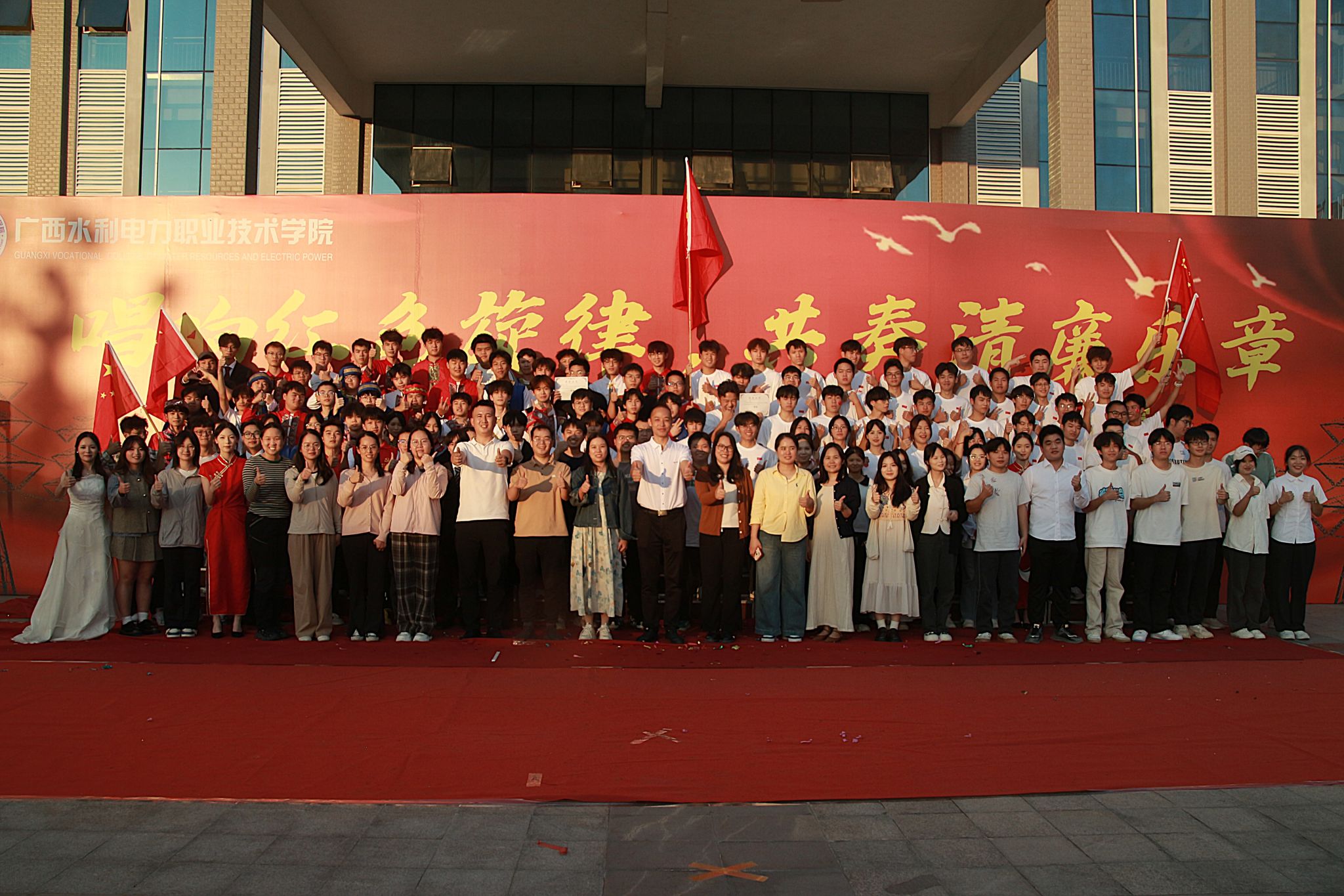 为弘扬爱国主义精神,丰富校园文化生活,11月1日下午,电力工程学院在里建校区图书馆广场成功举办了“唱响红色旋律,共奏清廉乐章”新生杯红歌合唱大赛暨中华经典朗诵大赛。电力工程学院党总支书记罗宇强及辅导员代表出席本次活动。
