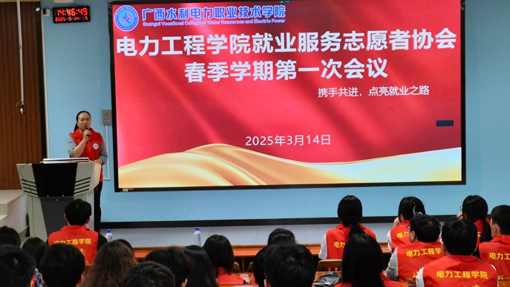 3月14日,电力工程学院就业志愿者协会在里建校区教学楼阶梯101教室成功举办了2025年度春季学期首次全体大会暨培训会。此次会议旨在凝聚新老志愿者力量,明确新学期工作方向,提升志愿者服务能力,为助力学院学生就业工作开启新征程。