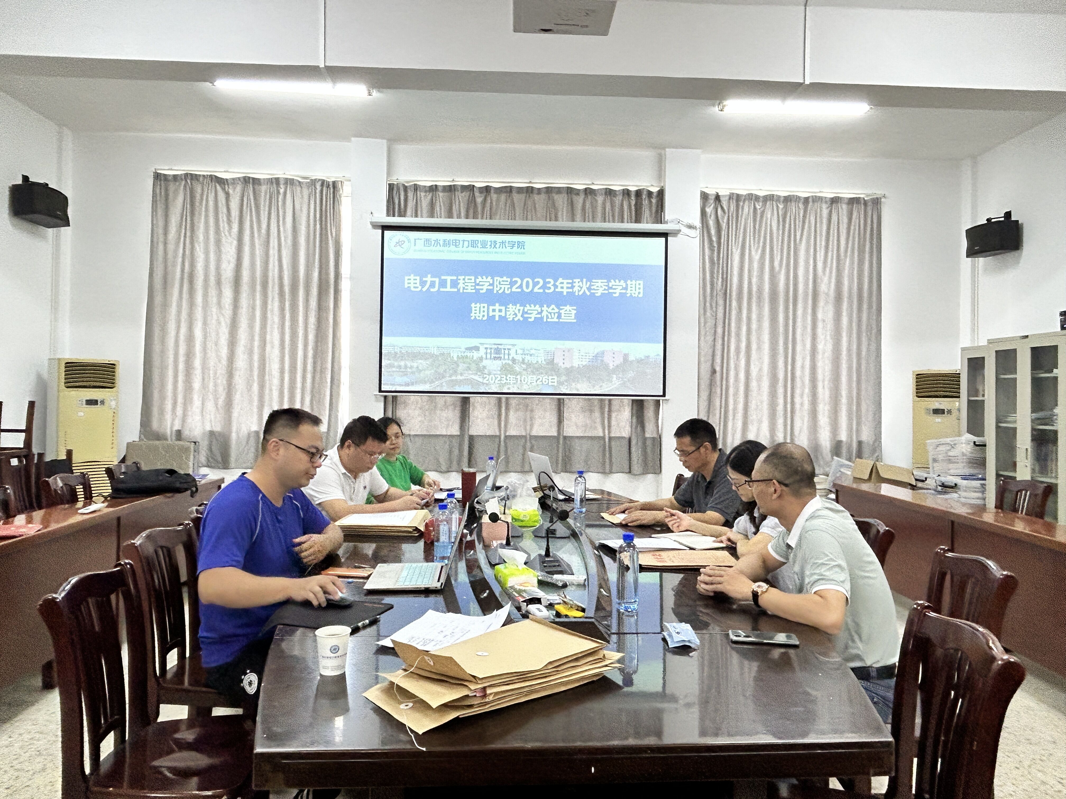 [本网讯]10月26日,电力工程学院在长堽校区电力实训楼5楼会议室召开2023年秋季学期期中教学检查工作会。学校质量管理办公室主任龙艳红教授、电力工程学院院长左江林、副院长徐庆锋及专业负责人参加。