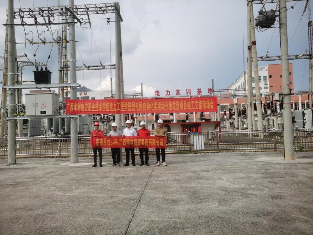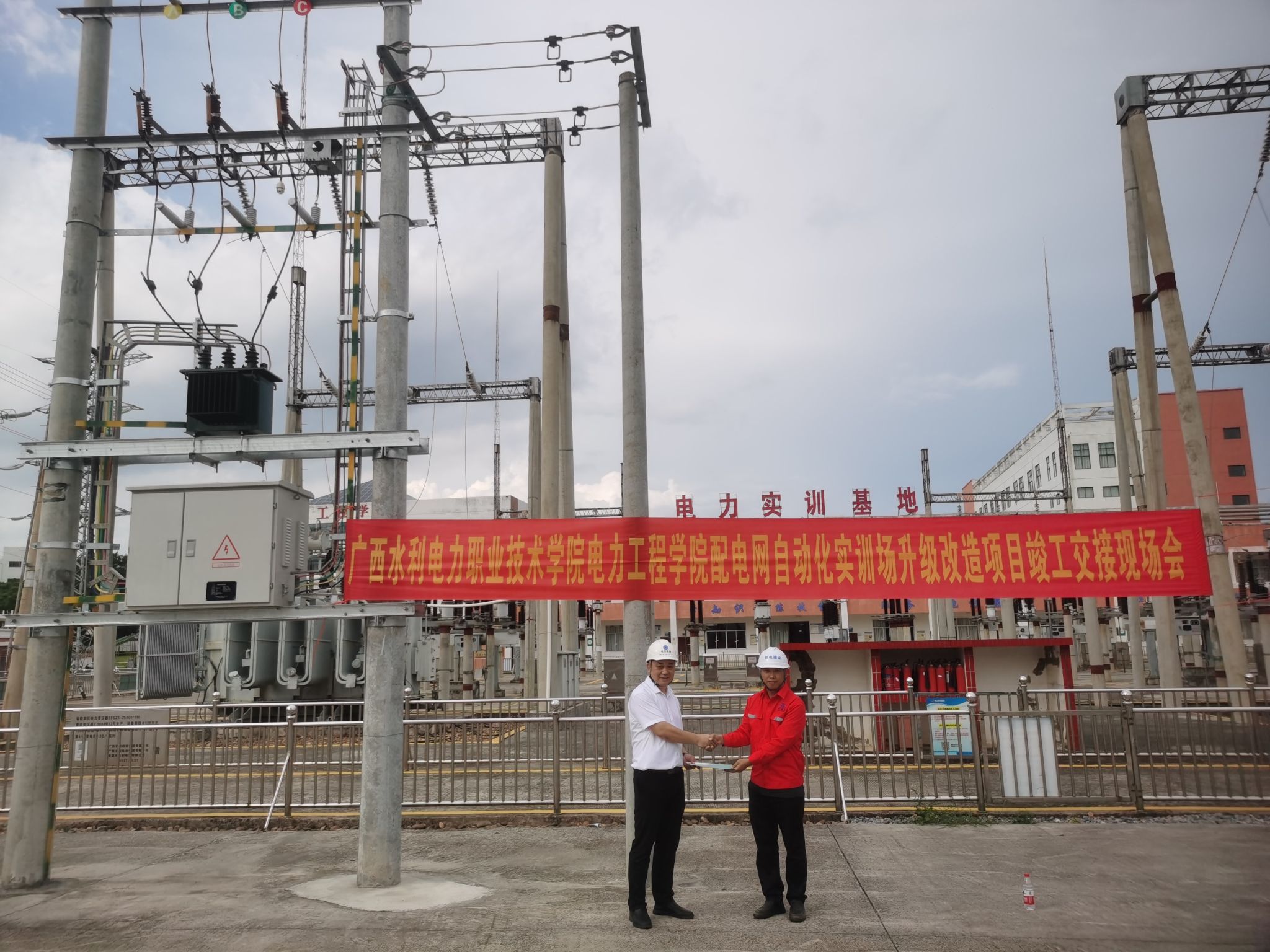 8月24日,广西明电投资集团有限公司成功助力pp电子游戏平台官网电力工程学院完成配网自动化实训场升级改造项目并举行竣工交接仪式。学院谭振宇副院长、教师代表及广西明电投资集团有限公司(下称明电集团)李鹏经理和工作负责人沈海卫参加交接仪式。