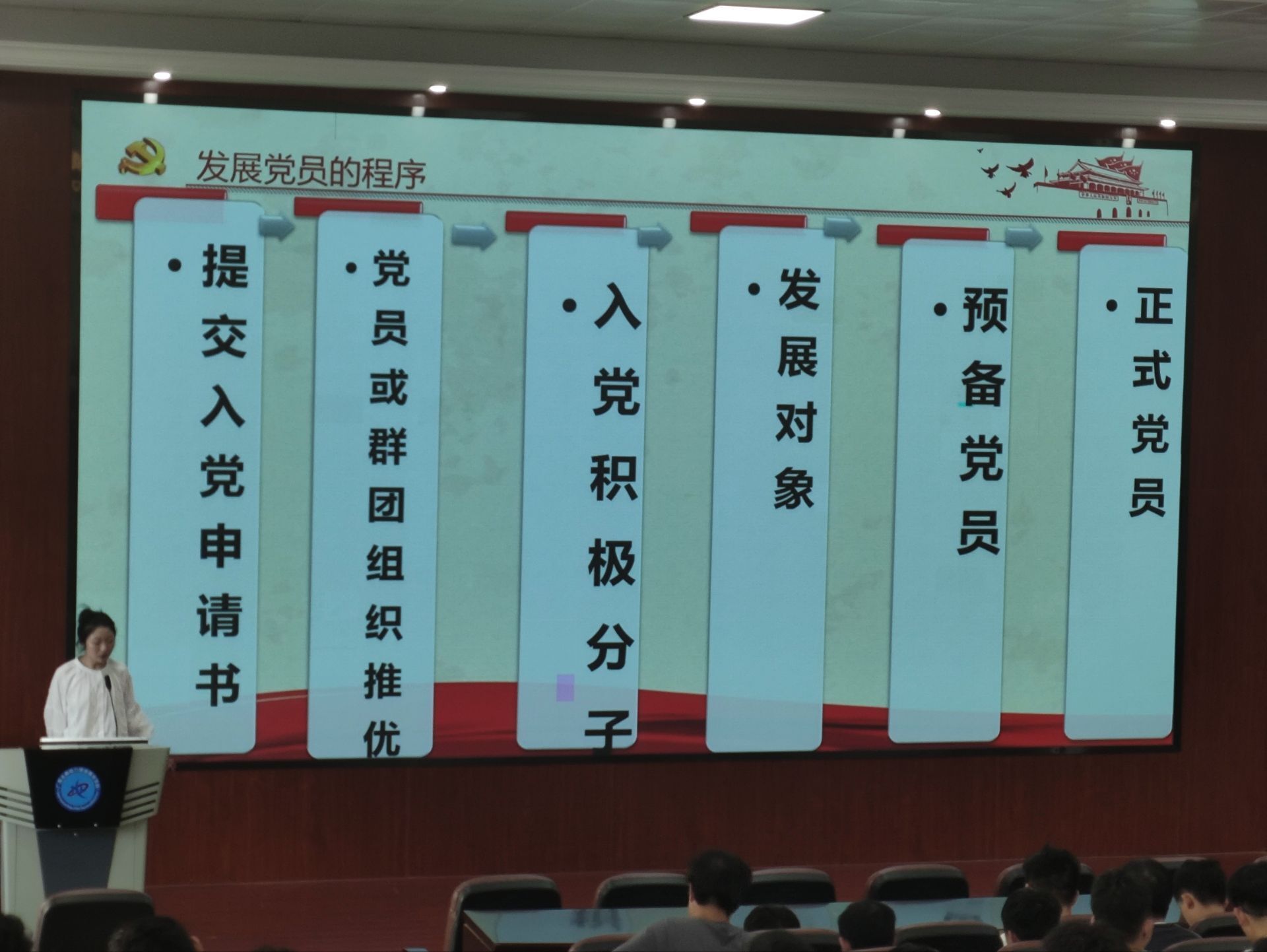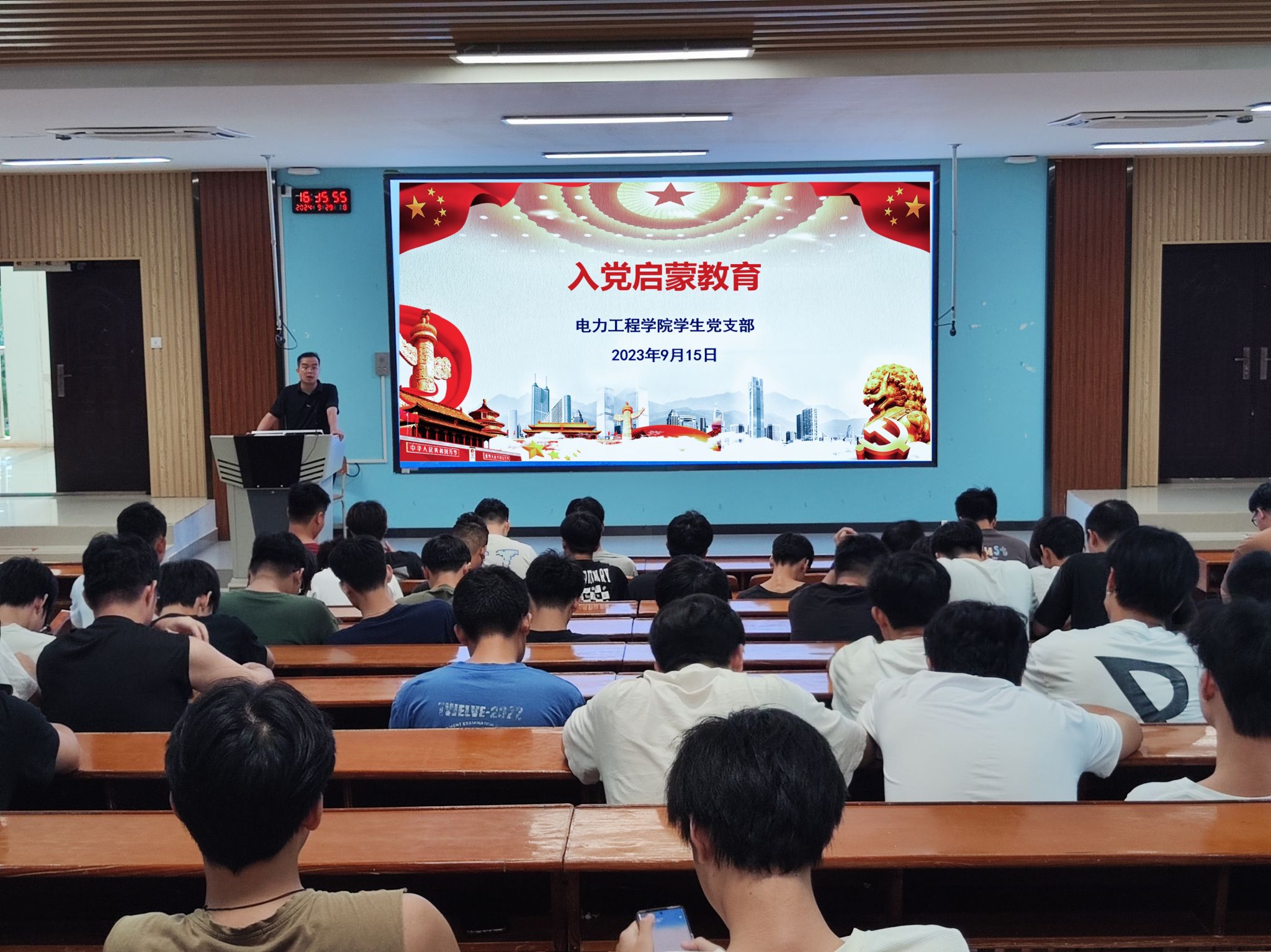 此次入党启蒙教育活动由电力工程学院专职组织员赵丹、学生党支部组织(统战)委员黄香兰、学生党支部宣传委员梁克冬以及各位新生辅导员们共同开展,活动中老师们重点围绕为什么加入中国共产党、怎样加入中国共产党、如何做到以党员标准严格要求自己等几个方面,讲解了入党条件、入党程序与步骤、入党申请书的撰写格式等注意事项。