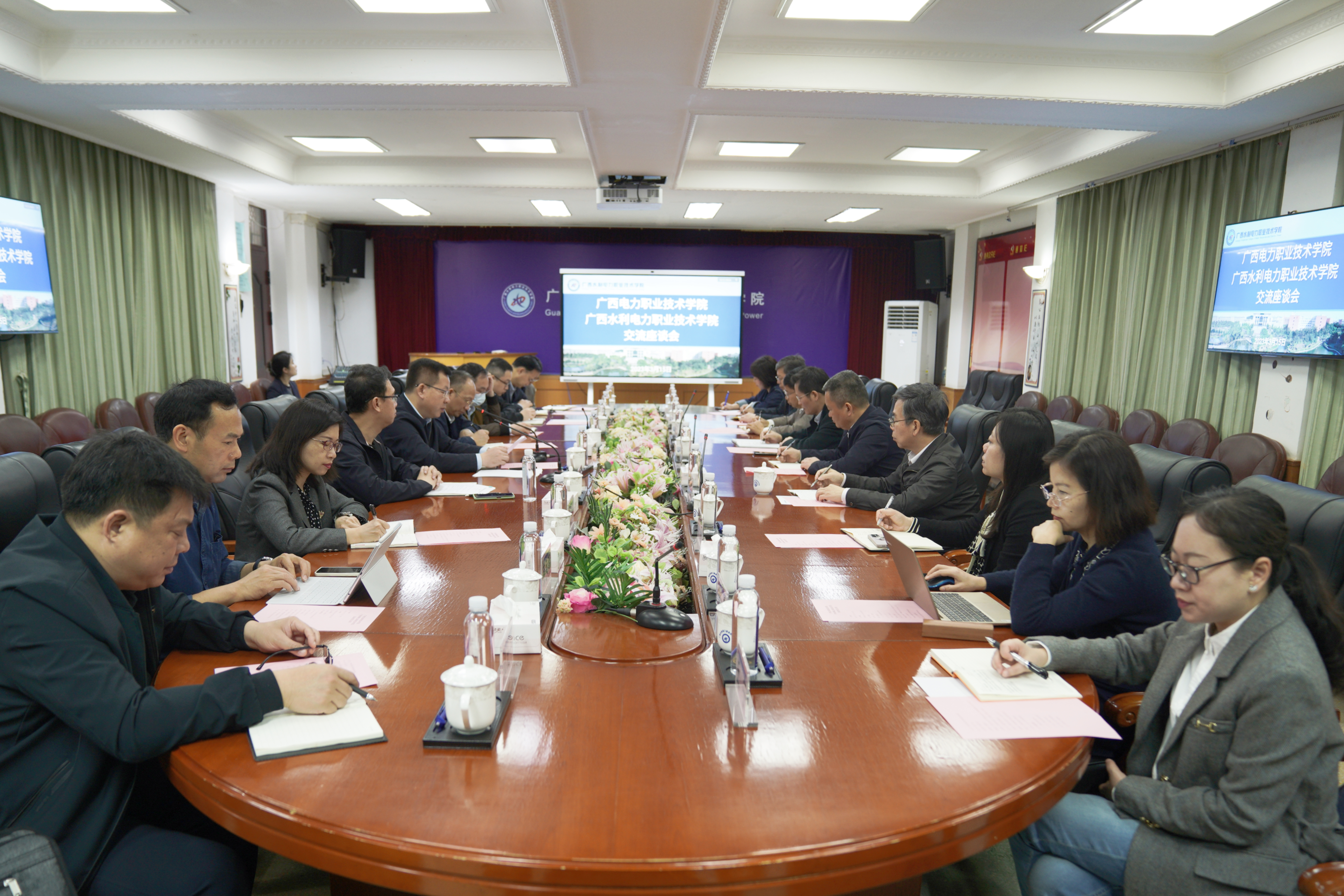 [本网讯]3月15日上午,广西电力职业技术学院校长赵峰一行9人到pp电子交流教育教学工作经验。我校李林校长、纪委书记邓文勇、刘存香副校长出席交流座谈活动。
