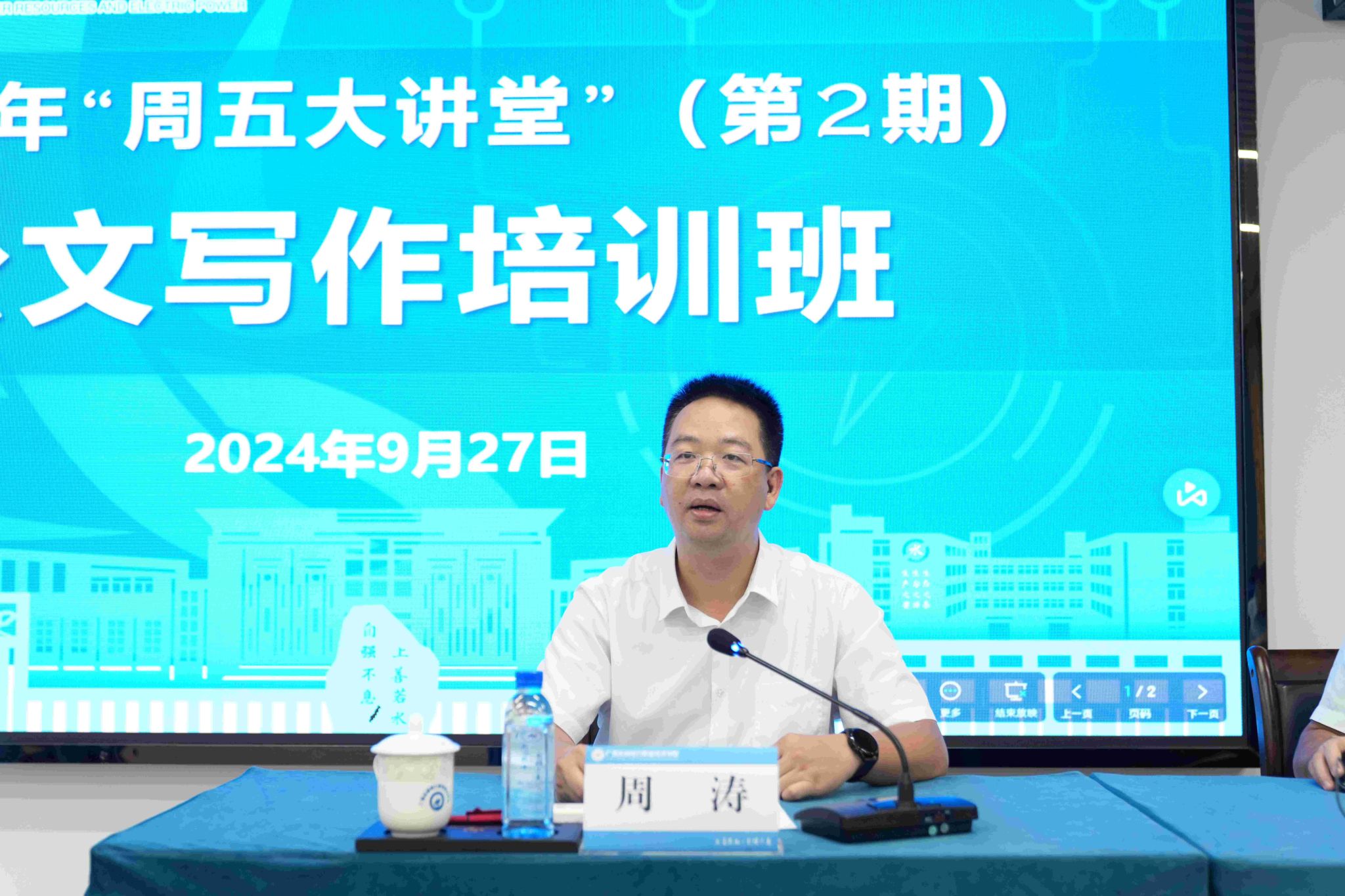 [本网讯]9月27日下午,学校在长堽校区举办“周五大讲堂”(第2期)——公文写作培训班。学校副校长周涛主持培训班。