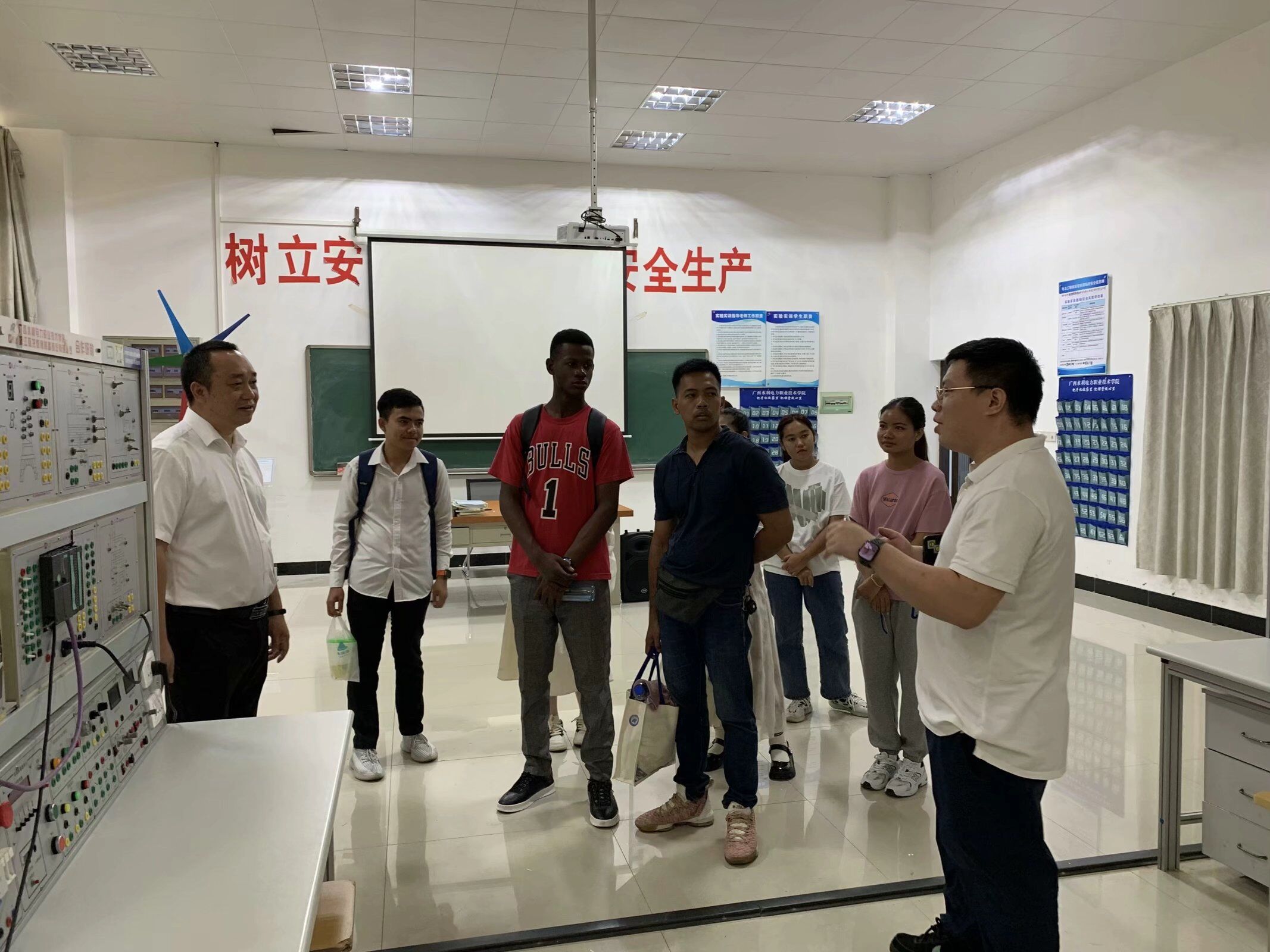 电力工程学院老师为留学生介绍PLC实训室