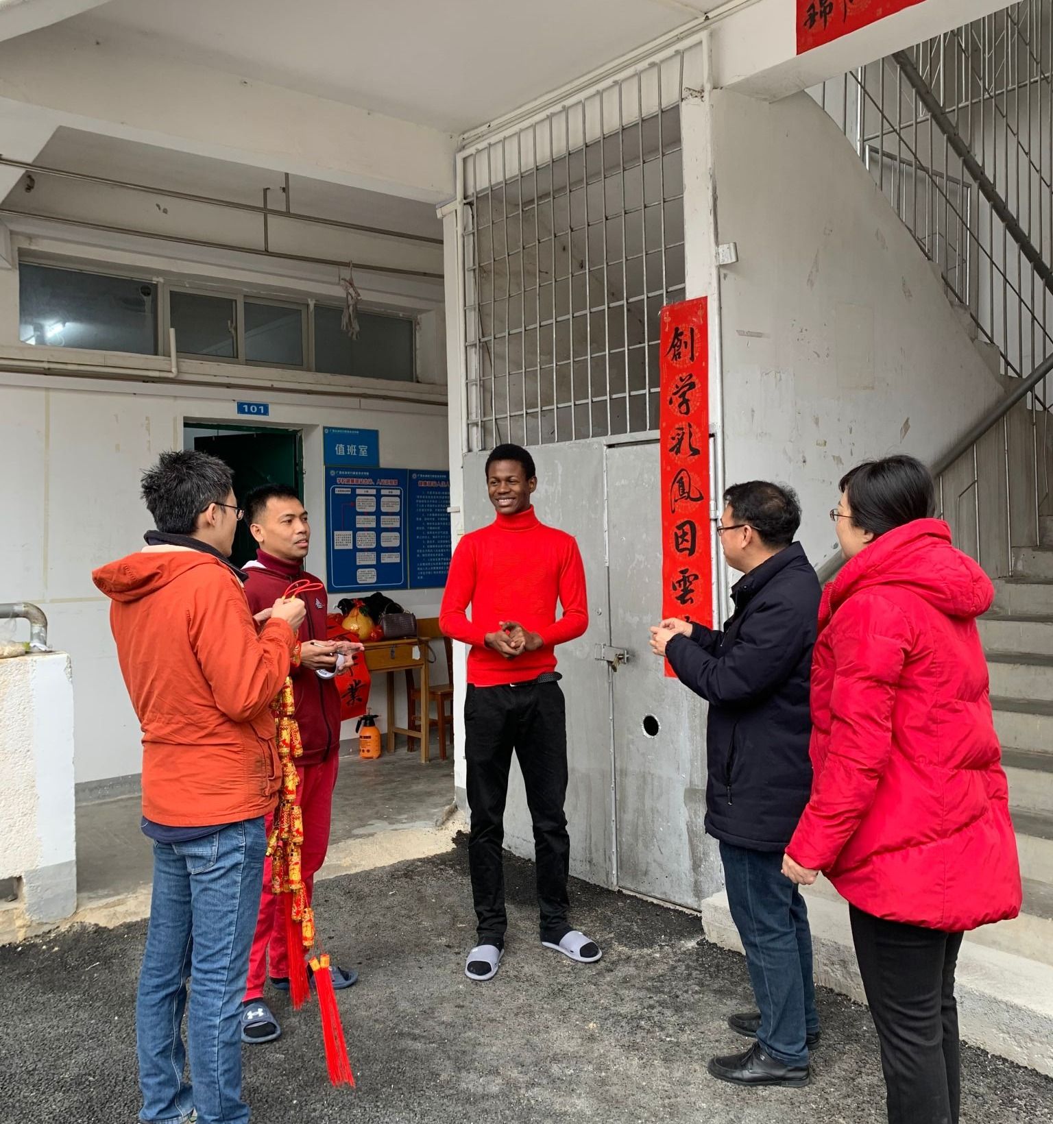春节期间,副校长刘存香带领外交流中心教师走访留学生宿舍,通过贴春联、挂装饰等活动,传递了节日的温暖与关怀。这些活动不仅让留学生感受到了中国传统新年的魅力,也展示了学校大家庭的温暖,加强了留学生与学校的情感联系。