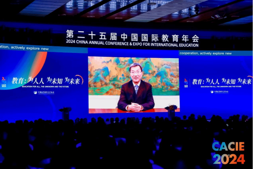 10月31日上午,全国人大常委会副委员长、民盟中央主席、欧美同学会(中国留学人员联谊会)会长丁仲礼出席大会并作开幕致辞。教育部部长怀进鹏作视频致辞。中国教育国际交流协会会长刘利民主持开幕式。丁仲礼强调,中国将深入推进教育高水平对外开放,坚持“引进来”与“走出去”相结合,鼓励学生出国留学,吸引海外优秀人才来华学习交流,进一步扩大学术交流与科研合作,促进国际协同创新,深化同国际组织和多边机制合作,为推动全球教育事业发展贡献更多中国力量。怀进鹏表示,中国始终坚持教育对外开放,积极与世界分享优质教育资源。推动世界可持续发展,适应全球变革,需要通过教育赋能个人、重塑社会、引领未来。他倡议,要更大规模推动资源普惠共享,更高质量推动学术科研与国际合作,更深层次推动人文交流。
