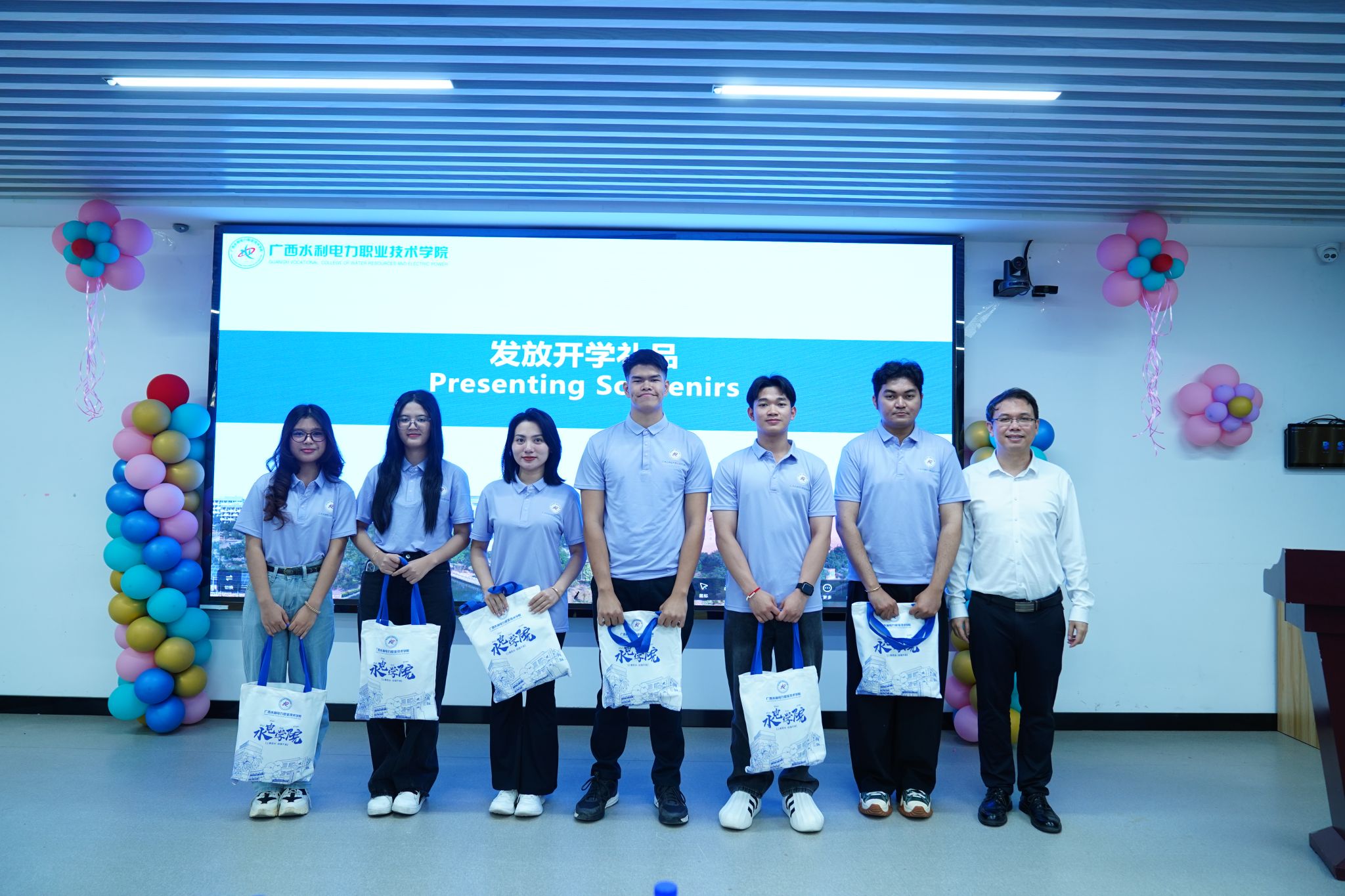 典礼上,刘存香代表学校向远道而来的48名来华留学生致以热烈欢迎。他用中英双语向全体留学生介绍了学校的办学历史及基本情况,并提出三点殷切期望:一是主动拥抱多元文化,学会求同存异,尊重他人信仰、风俗;二是主动融入学校,广交朋友,珍惜跨越山海的同窗情谊;三是深化对中国的认知与理解,在努力学习之余多走走看看,感受广西风土人情的独特魅力。他希望每一位留学生都可以在“留学水院”的珍贵经历中成就更好的自己。