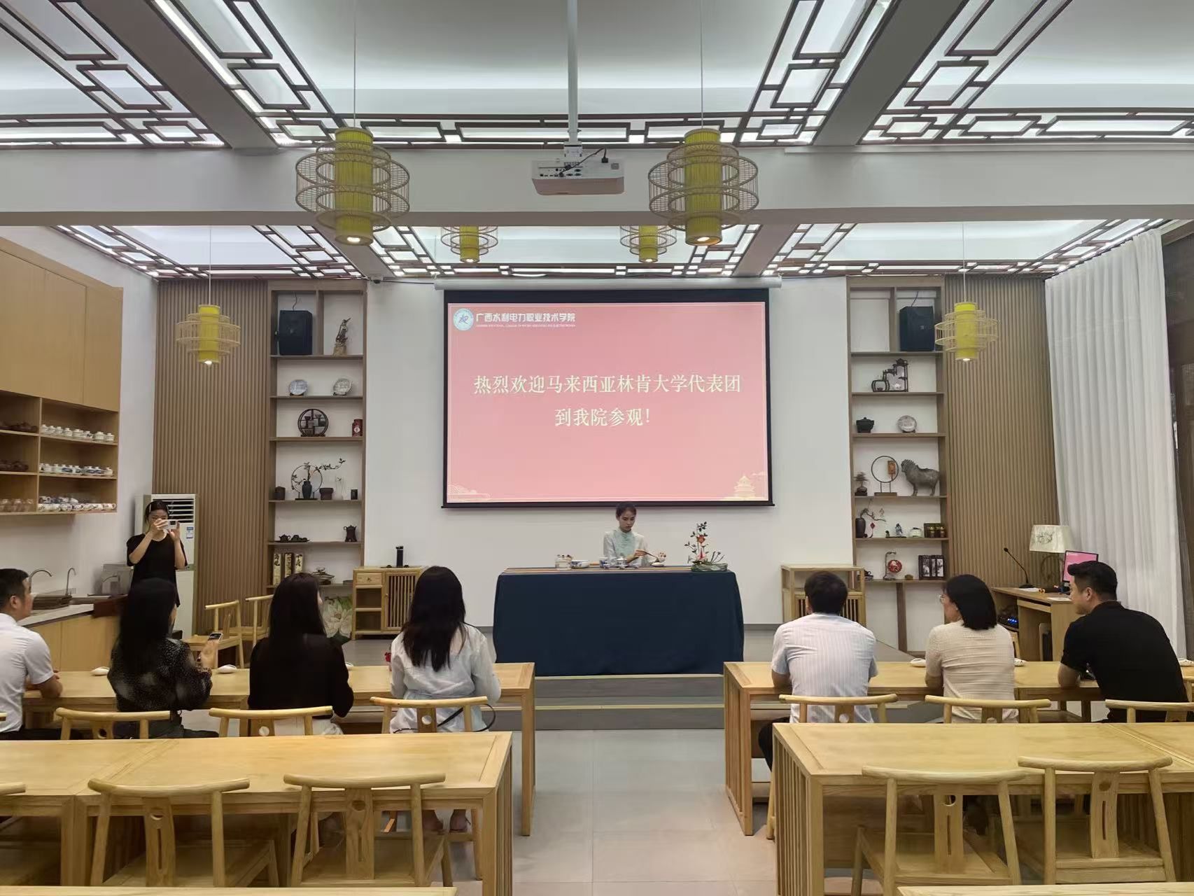 会后,代表团前往经济管理学院茶艺实训室,观看由师生带来的中国传统茶艺表演,感受传统茶文化的独特魅力。此次交流活动促进了中马两校之间的文化交流和理解,为双方开展职业教育合作奠定了坚实的基础。