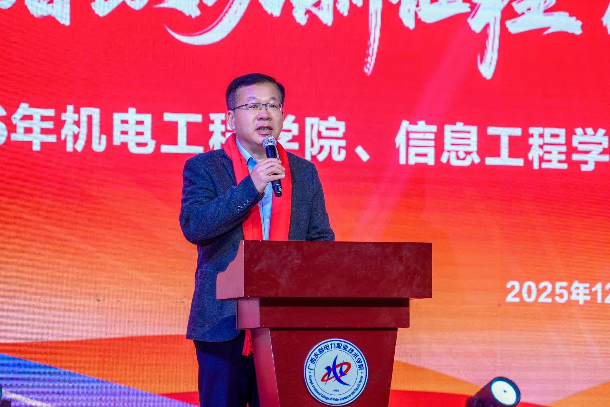 [本网讯]银蛇辞岁,金马迎春。12月28日晚,由机电工程学院、信息工程学院、经济管理学院联合主办的“青春跃动新征程,匠心筑梦向未来”元旦文艺汇演在长堽校区圆满举行。学校党委书记李林、副校长潘念萍、副校长周涛、副校长黄海滨出席本次活动。