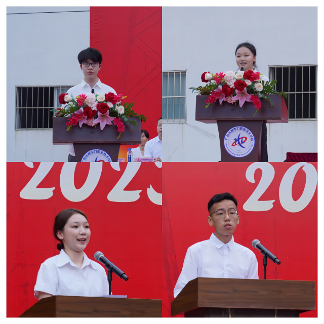 典礼中,五星红旗在雄壮的国歌声中冉冉升起,新生代表机电工程学院卢韬欢、经济管理学院张嘉媛分别发言,表达了对人生新旅程的憧憬与期待。老生代表水利工程学院黎雨宁、信息工程学院曹力友分别分享了自己在学校的心路历程,学习与感悟。教师代表黄毅、邓丽萍勉励新生努力学习,享受奋斗过程,体会探寻知识海洋的快乐,时刻不忘以创新为己任,追求卓越。