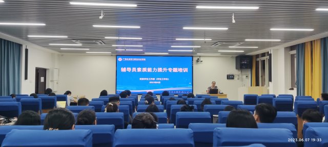 [本网讯]为进一步提升辅导员理论水平、职业能力和专业素养,6月7日晚,学校举办辅导员素质能力提升专题培训,党委学生工作部部长李晓红作培训指导,全体辅导员参加。