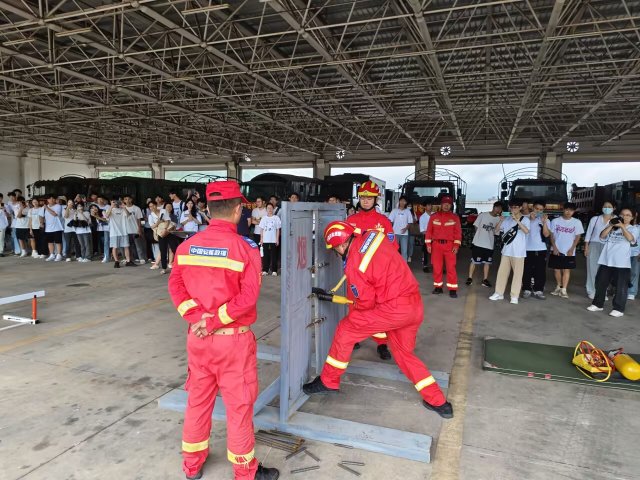 活动期间,师生一行首先参观了中国安能一局的改革发展宣传展板,详细了解了安能一局救援铁军(原水电武警部队)的光辉历程和辉煌成就、完成的重大抢险任务和应急救援科技装备建设等方面的情况。在应急救援装备静态展示区,师生参观了综合指挥车、通信车等指挥车辆,观看了生命探测仪、六旋翼无人灾情侦测机、大功率龙吸水、全地形救援车等高科技抢险装备的操作演示,直观了解了各种抢险装备的功能及作用。在展示装备区,现场救援队员展示了圆盘切割锯灯泡上切钢丝、液压剪切钳夹鸡蛋等精准操控技术,救援队员还讲解了灭火器的详细操作方法。救援队员精湛的专业技能、良好的精神状态、高超的技能赢得了师生的阵阵掌声。