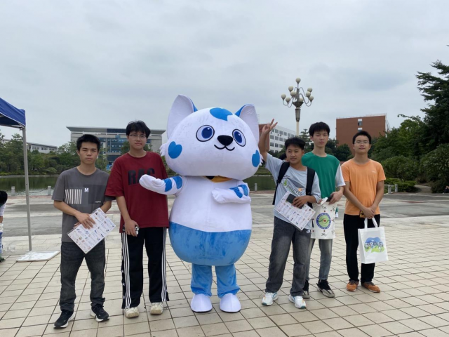 领取奖品的同学与“水电心汪”合照