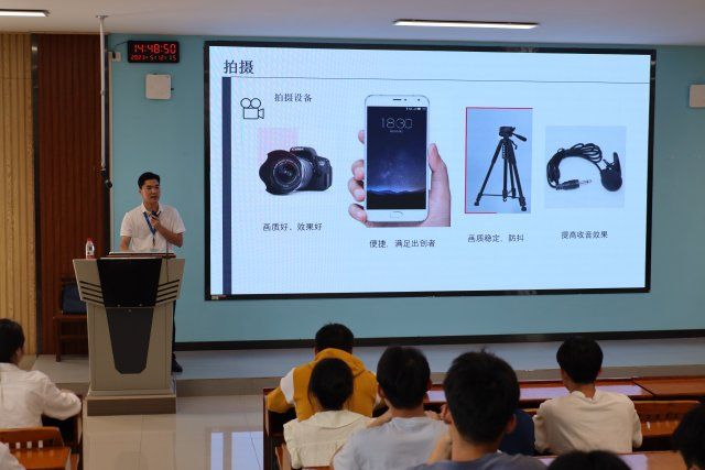 此次培训由参2022年全区高校资助主题微视频大赛获奖作品指导老师陈昌世主讲陈老师分别从主题分析、脚本制作、影片拍摄、后期制作、互动交流等五个方面进行分享。现场采取“理论+实操”“讲课+问答”相结合的形式,系统讲述短视频拍摄剪辑制作的流程和技巧,通过通俗易懂的语言和典型视频的演示,让师生更直观地了解一个完整视频背后的设计与巧思。