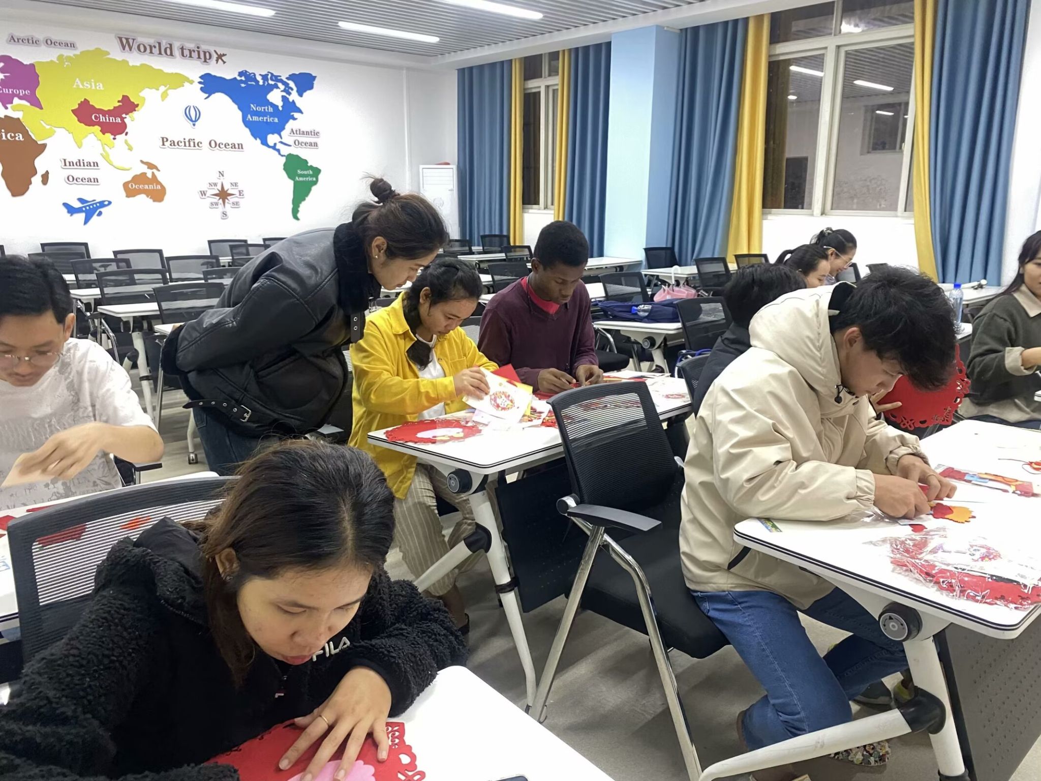 留学生们认真DIY