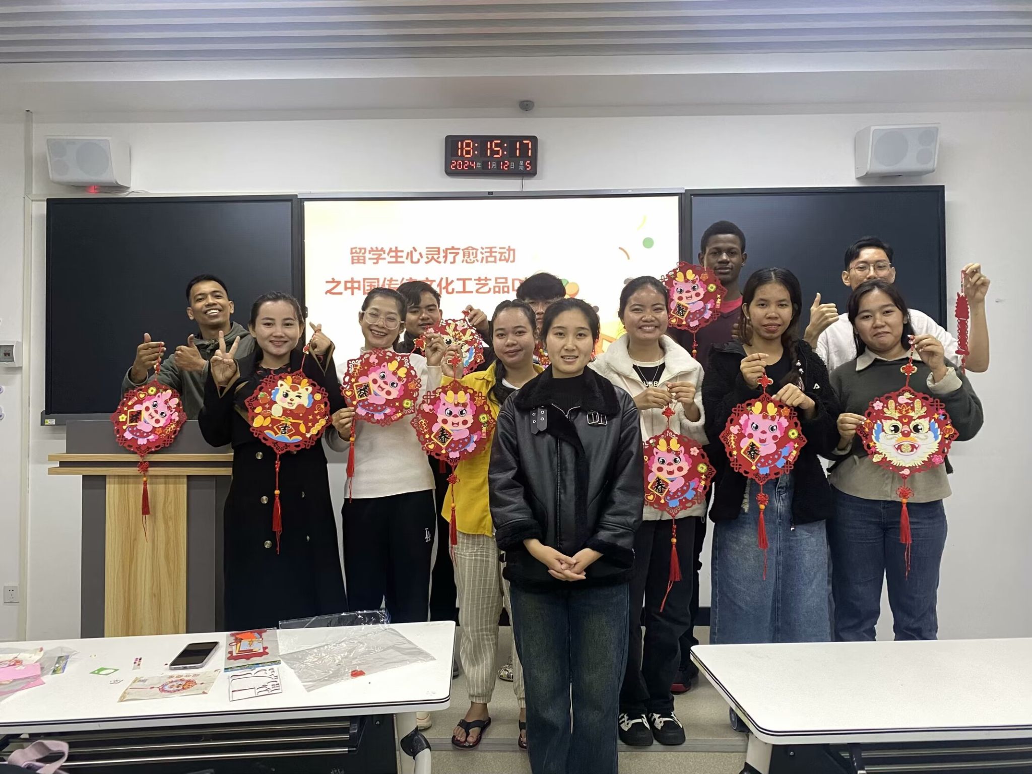 首先,雷晓芳老师向大家介绍正念心理疗愈和中国传统文化知识,接着由留学生们自由创作中国传统文化工艺品,活动气氛热烈,反响较好。