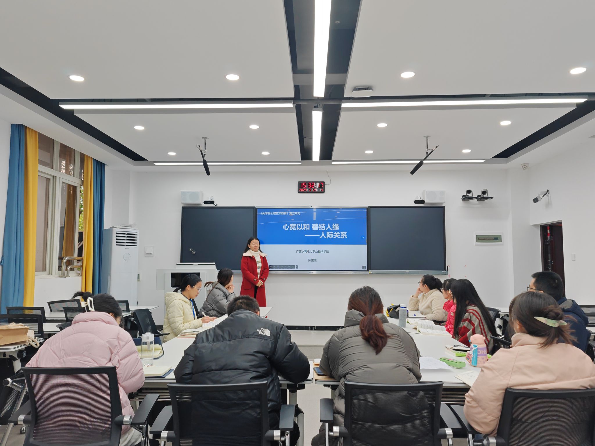 试讲结束后,进入交流环节,张桂源老师首先总结了上学期心理课授课情况,并对本门课程的教学计划、大纲和重难点等进行介绍。其次,心理中心专职教师对各单元的教学重难点、教学设计与教学方法进行分享。期间,还对该课程教学进行深入讨论,在如何优化课程授课方面达成共识,最后,张老师对大家提出了几点希望,要注重提升心理教学技能,认真负责对待教学工作,为新学期教学工作做好准备。(宋柯磊/文 韦俊华/图)