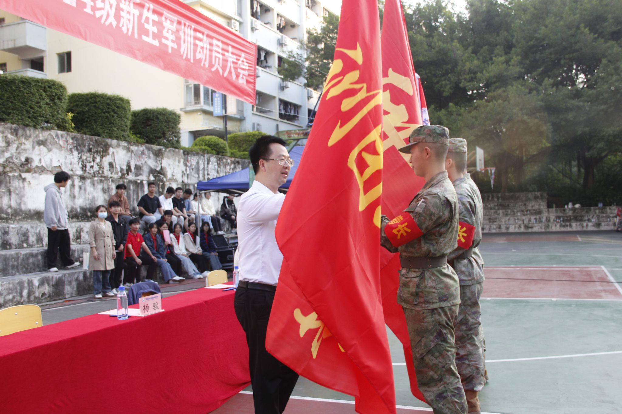 [本网讯]11月9日上午,学校分别在长堽、里建两校区召开2024级新生军训动员大会。学校副校长蒋文沛、副校长周涛出席讲话并授军训团团旗、军训营营旗。党委学生工作部部长李晓红、副部长杨骏主持大会。