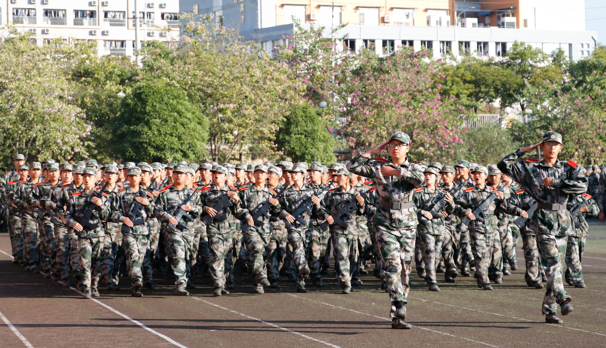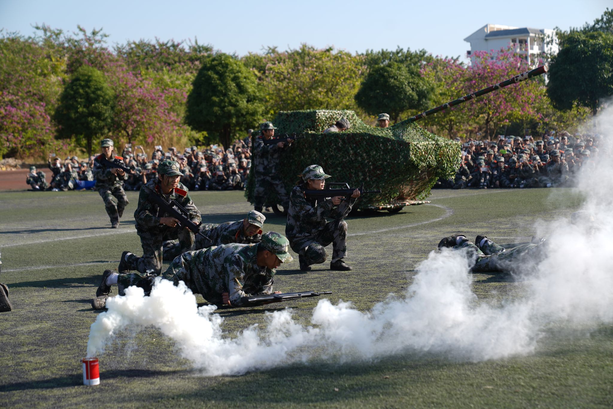 在军训团方阵的带领下,受训方队的同学们队列整齐划一,口号嘹亮有力,以步伐奏乐章,踏地削风,英姿飒爽、意气风发地走过主席台。在拳术、盾牌操、刺杀操、大刀操、匕首操、战术基础动作等军训科目汇报展示中,同学们眼神坚定,动作稳健,敏捷有力,赢得了热烈掌声和阵阵喝彩。同学们精湛的技能、娴熟的动作、默契的配合、磅礴的气势充分展现了水电学子良好的精神面貌和本次军训的丰硕成果。