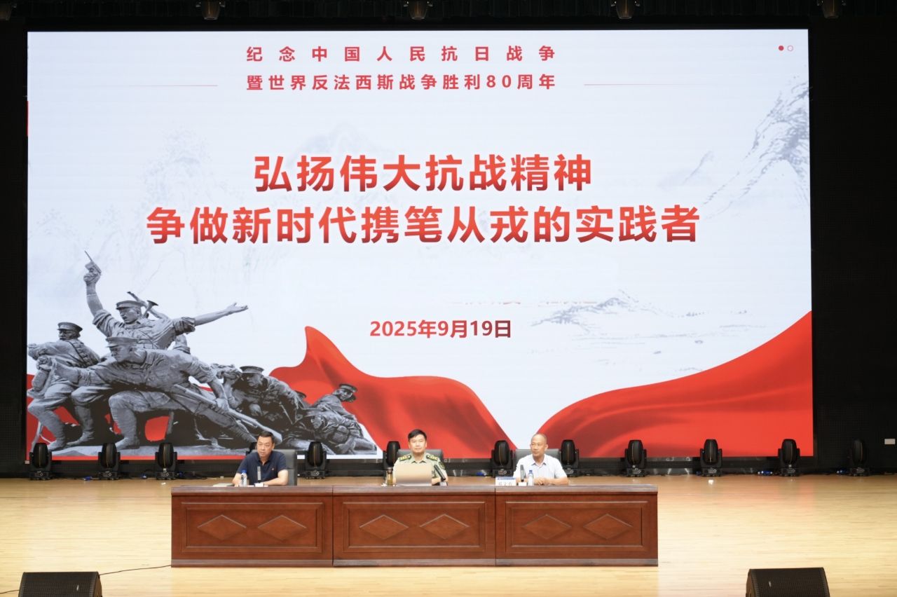 人武部领导通过视频、PPT、照片等方式,用四个篇章,引经据典讲述抗战历史,旁征博引阐释时代使命,整场讲座内容充实、气氛热烈,同学们专注聆听并纷纷表示要肩负青年使命,为国家建设贡献青春力量。