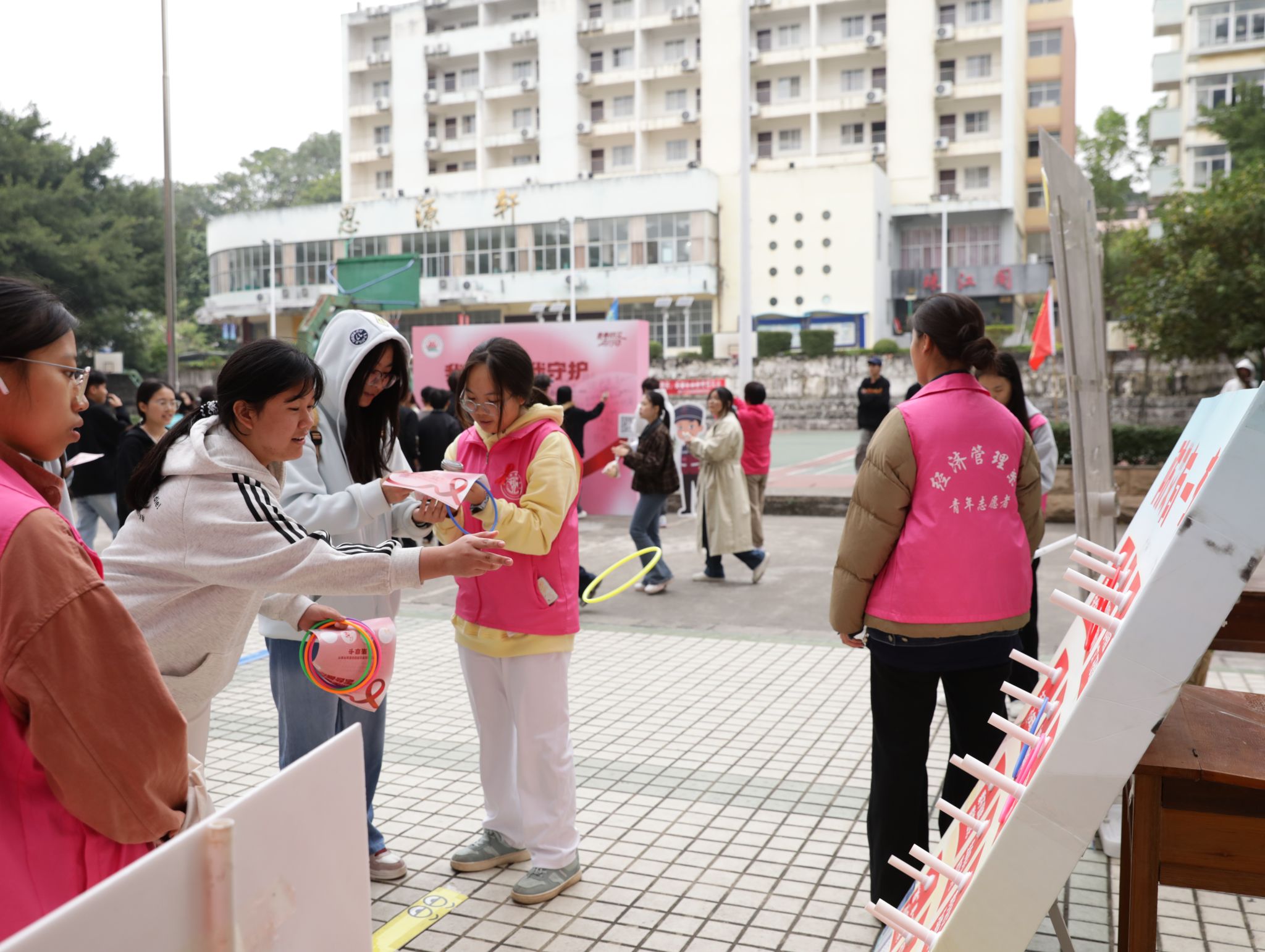 本次活动以“让爱靠近 让‘艾’远离”为主题,分为静湖大讲堂与游园宣传两大环节。南宁市疾病预防控制中心健康教育与促进科科长郭亮永为学生作了题为《知己知彼,百战不殆:艾滋病与校园常见病防护全攻略》的专题讲座,精彩的讲座赢得了学生阵阵掌声。讲座结束后,防艾主题寻宝游园会暨宣传集市在四教前广场拉开帷幕。趣味十足的寻宝游戏结合防艾知识宣传,让同学们在轻松愉悦的氛围中学习防艾知识,加深对艾滋病防治的理解与认知。