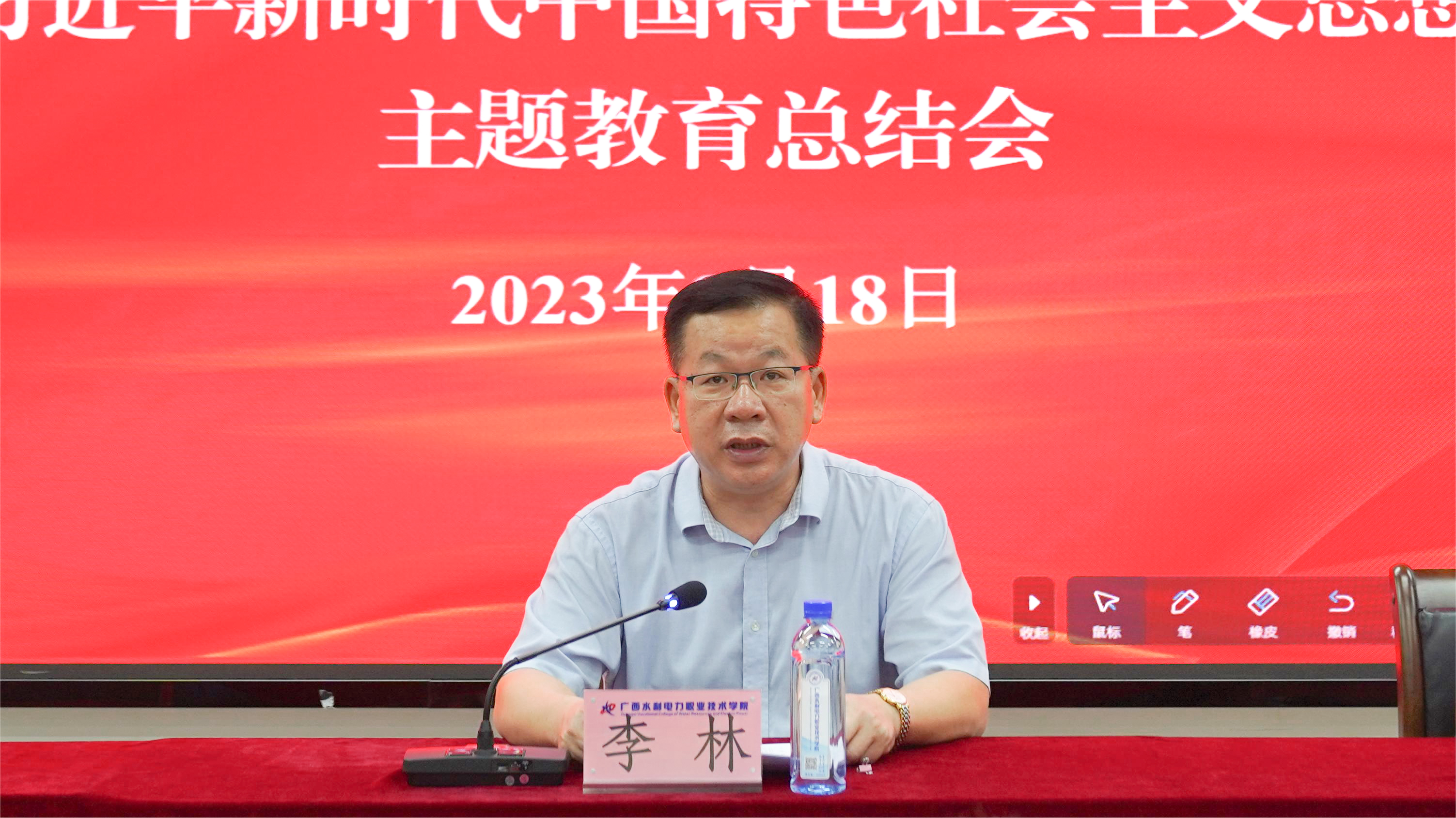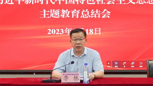 李林号召全体师生要深入贯彻落实中央、自治区党委主题教育总结会议精神,认真对照上级要求、群众期望和学校发展目标,清醒地认识仍然存在的差距和不足,巩固好这次主题教育的成果,把抓落实作为开展工作的主要方式,把主题教育的落脚点放在“重实践、建新功”上,带头抓落实,坚持“功成不必在我”的思想境界和“功成必定有我”的使命担当,坚持高质量发展主题不偏离,以推动学校高质量发展、提高师生幸福感、获得感的新成效检验主题教育成果,为建设壮美广西作出新的更大贡献!