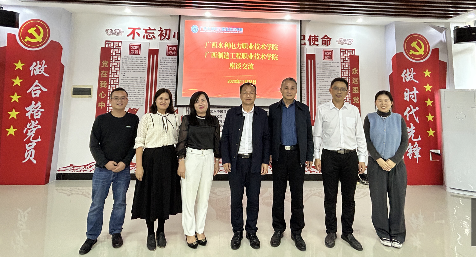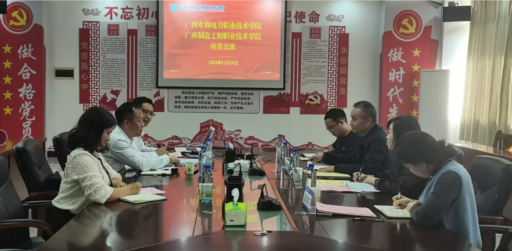 [本网讯]11月28日下午,广西制造工程职业技术学院党委副书记、纪委书记章红平一行4人到学校进行职称评审工作座谈交流。学校党委副书记侯宗毅热情接待来访宾客,并对学校总体办学情况、师资队伍建设情况和职称评审工作进行了介绍。