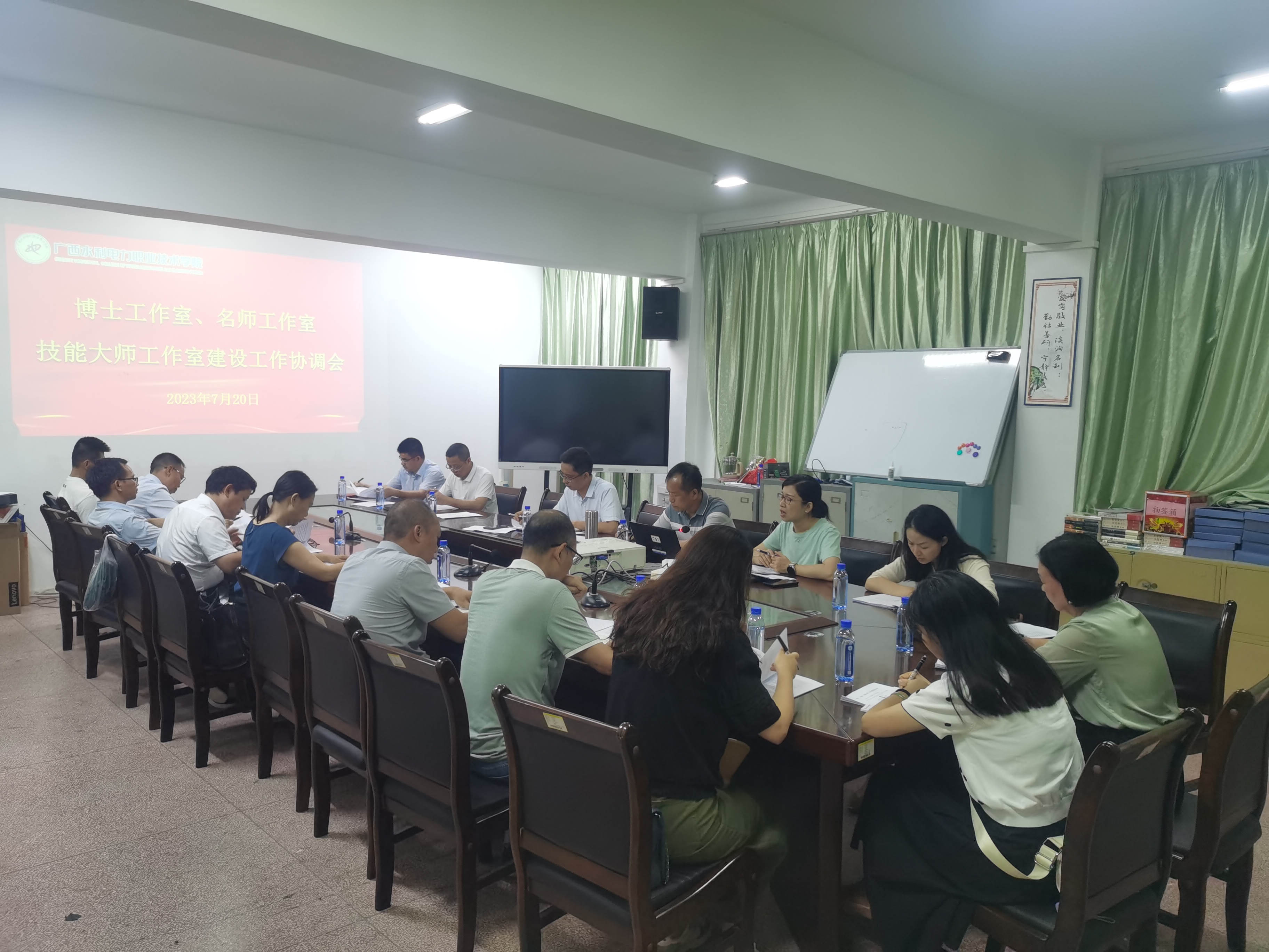 [本网讯]7月20日下午,为加强学校师资平台建设,以高水平师资队伍促进学校高质量发展,学校在长堽校区组织召开博士工作室、名师工作室、技能大师工作室建设工作协调会。学校党委副书记侯宗毅出席会议,人事处处长区倩如主持会议,相关职能部门负责人和各二级学院负责人参加会议。