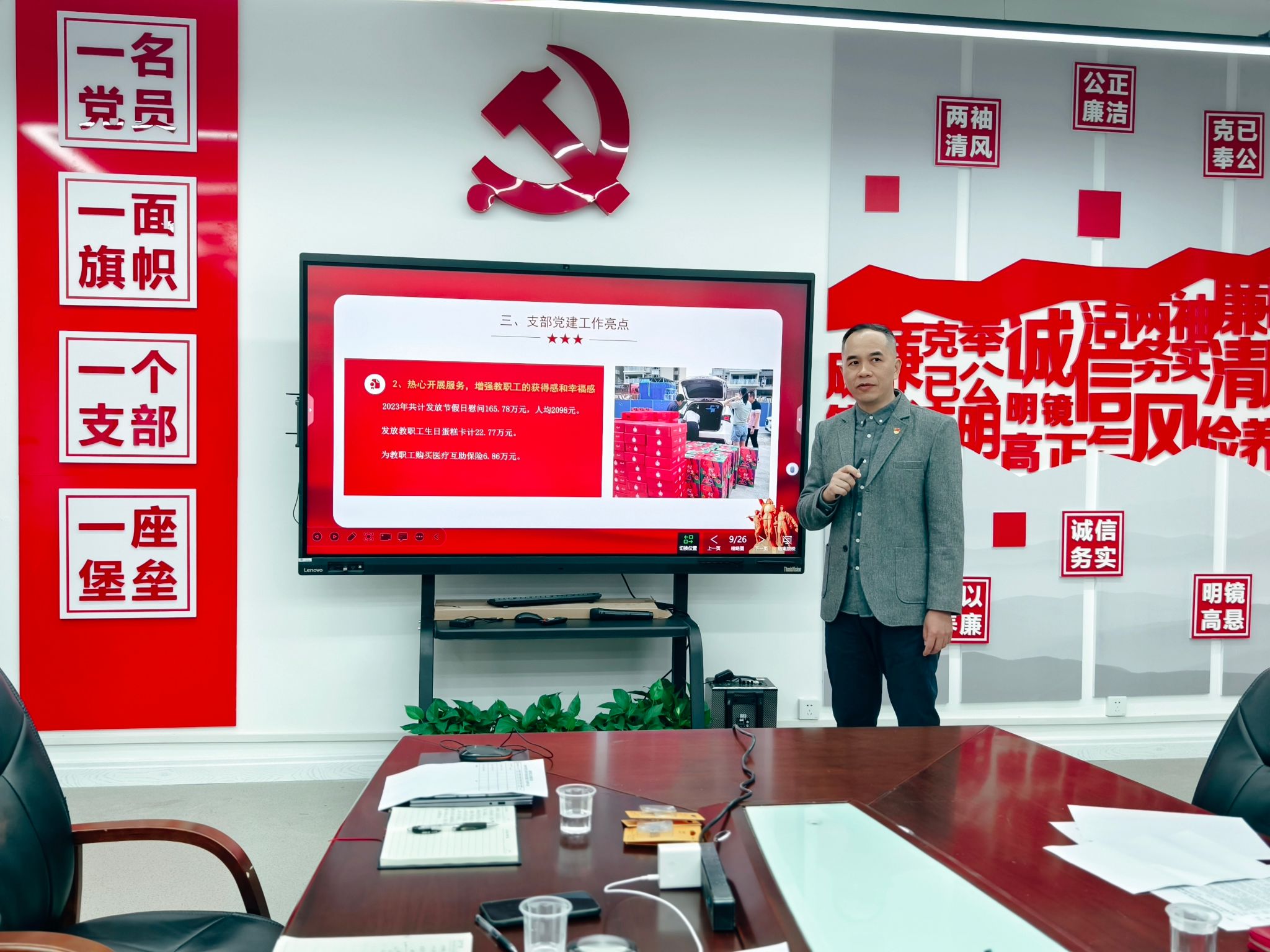 区倩如书记充分肯定所属党支部2023年党建工作成效,针对各党支部的薄弱环节及下一步工作开展提出建议。会议指出,退休党总支所属党支部书记认真履行党建第一责任人职责,支部新一届领导班子团结协作,带领党员冲锋在前,充分发挥了示范引领作用。两个在职党支部组织力强,战斗力强,做到党建工作与中心工作深入融合同部署同推进,充分发挥党建带群团建设作用,取得一系列标志性成果,有力推动学校高质量发展。两个退休党支部充分发挥党组织凝聚力,在“七一”“重阳”等重要节假日组织开展“老少牵手 同颂党恩”、法律知识讲座、读书分享会、重温入党誓词、送学上门等一系列丰富活动,彰显老党员退休不褪色的政治本色。