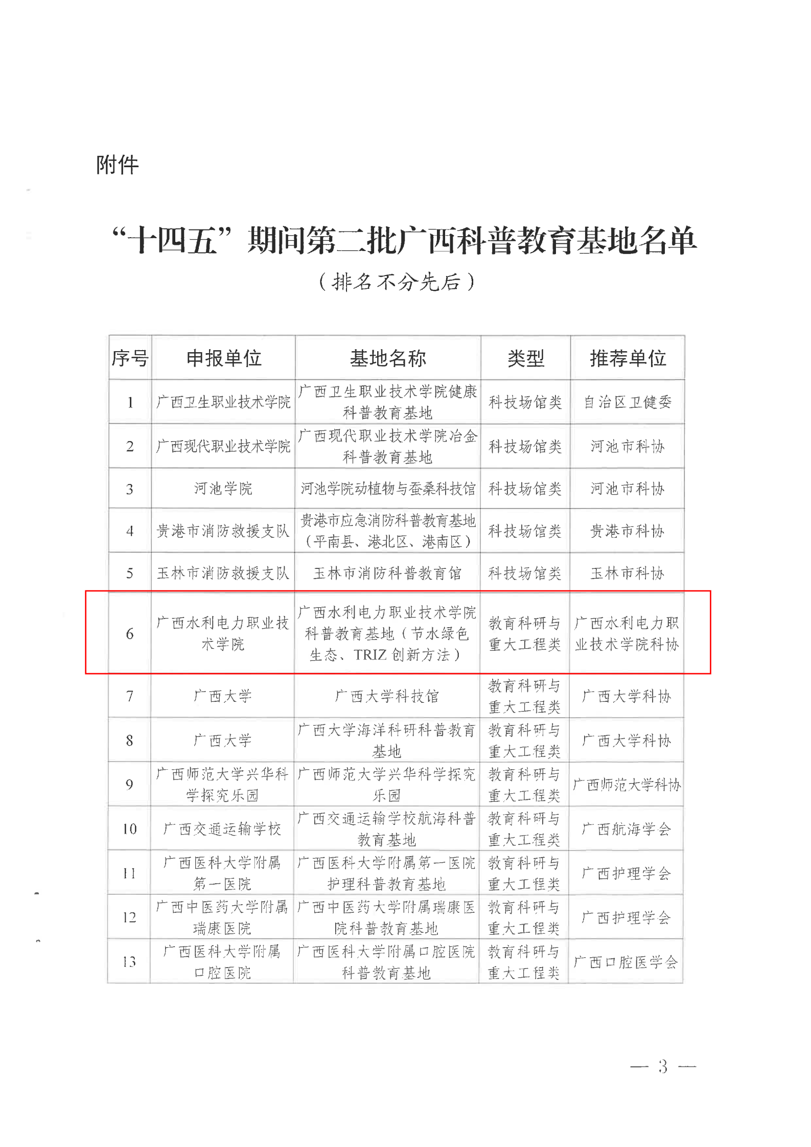 “十四五”期间第二批广西科普教育基地名单