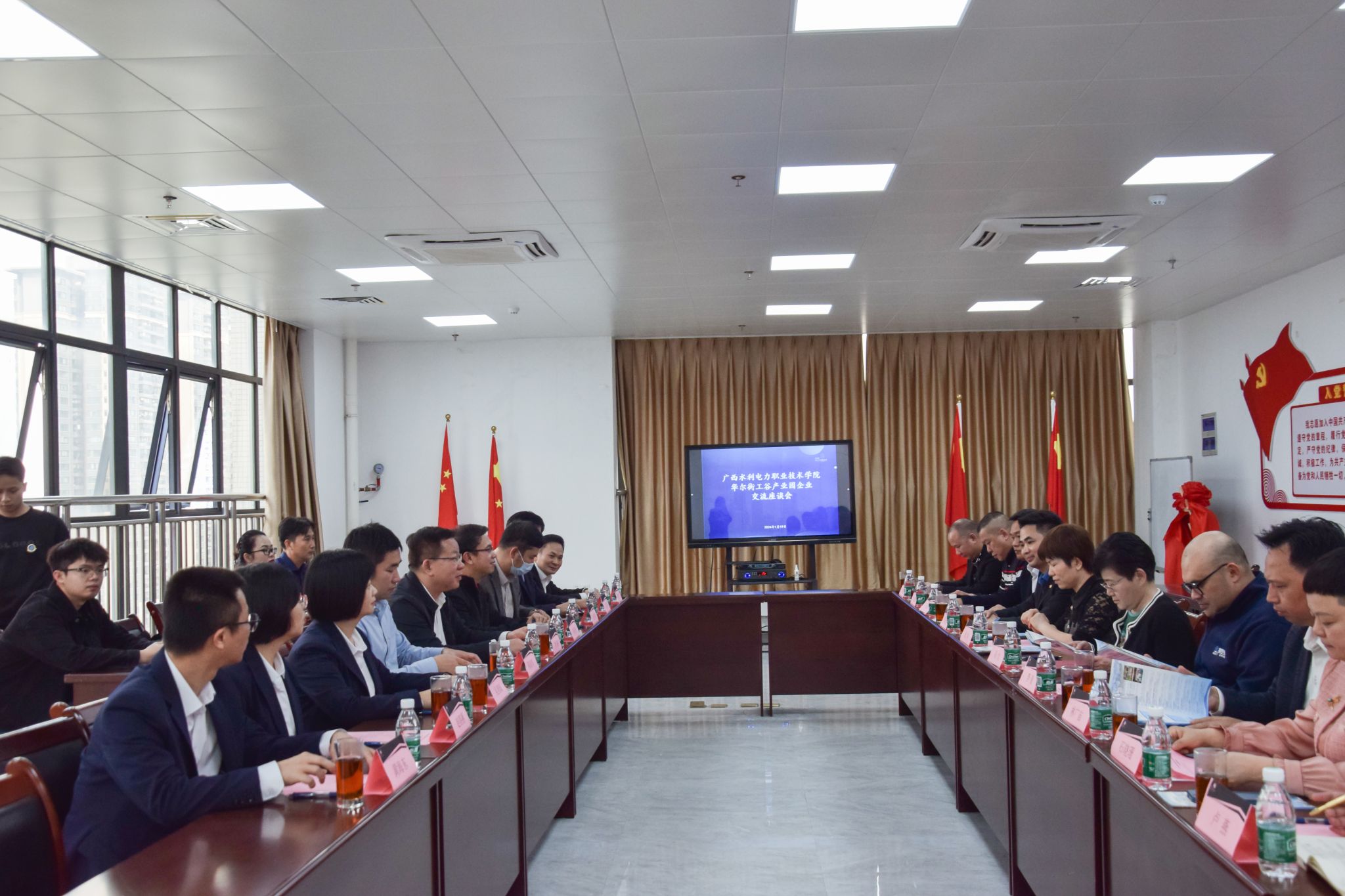 [本网讯]2024年1月20日下午,学校与南宁华尔街工谷产业园举行博士工作站揭牌仪式暨交流座谈会。学校李林校长、刘存香副校长、赵春艳博士、黄海东博士及相关部门负责人,华尔街工谷产业园总经理庞华、广西博盛智能科技有限公司等7家园区企业负责人参加了本次活动。