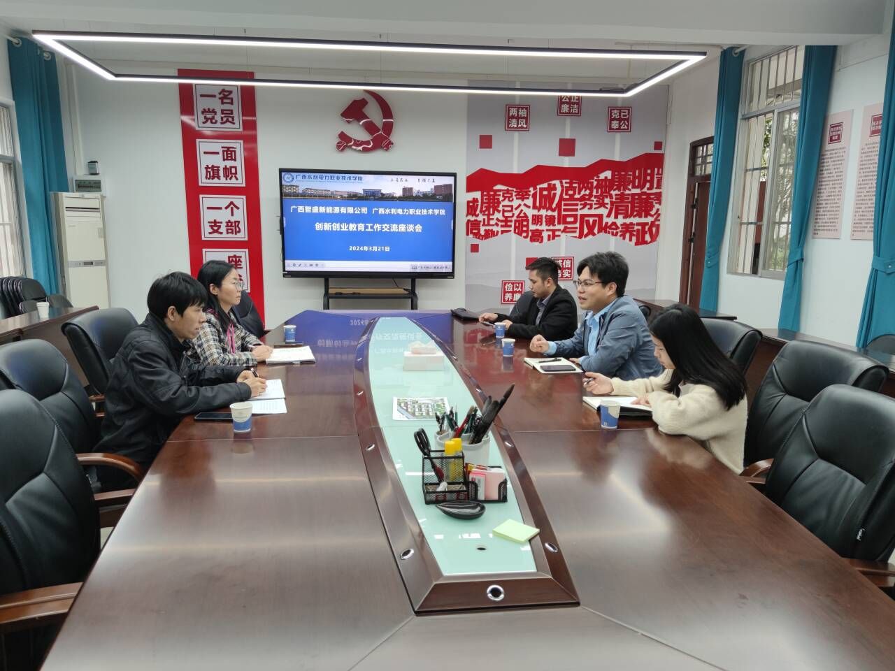 [本网讯] 3月21日上午,广西科学院区域与国际合作部伍志涛、广西智盛新能源有限公司总经理黄海欣一行3人到校开展科技与创新创业教育领域的合作交流座谈,学校发展规划与科技开发处副处长丁欣等老师参加。
