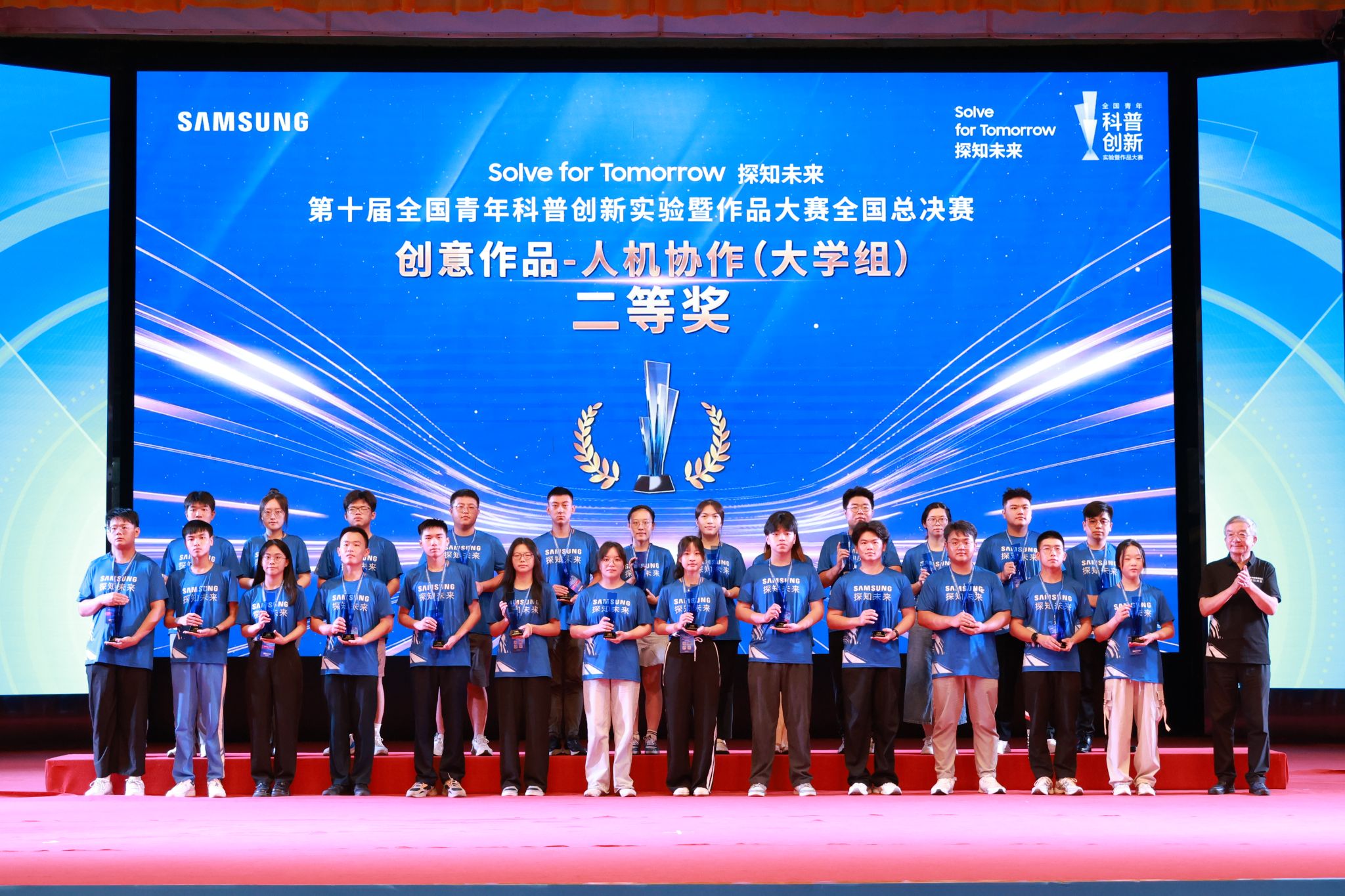 学校获奖选手代表上台领奖