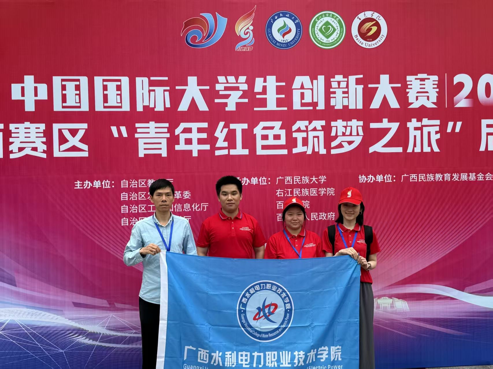 [本网讯]5月7日,由自治区教育厅举办的中国国际大学生创新大赛(2025)广西赛区 “青年红色筑梦之旅” 启动活动在广西百色举行。学校发展规划与科技开发处、电力工程学院、经济管理学院师生代表到现场参会,各二级学院组织学生观看线上直播。