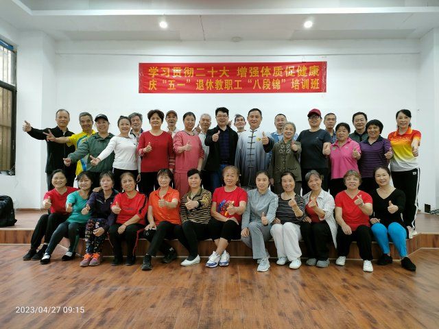 [本网讯]为丰富学校退休教职工的精神文化生活,促进老同志身心健康,工会于4月27、28日分别在长堽校区、大沙田校区举办“学习贯彻党的二十大精神 增强体质促健康”庆“五一”退休教职工“八段锦”培训班。