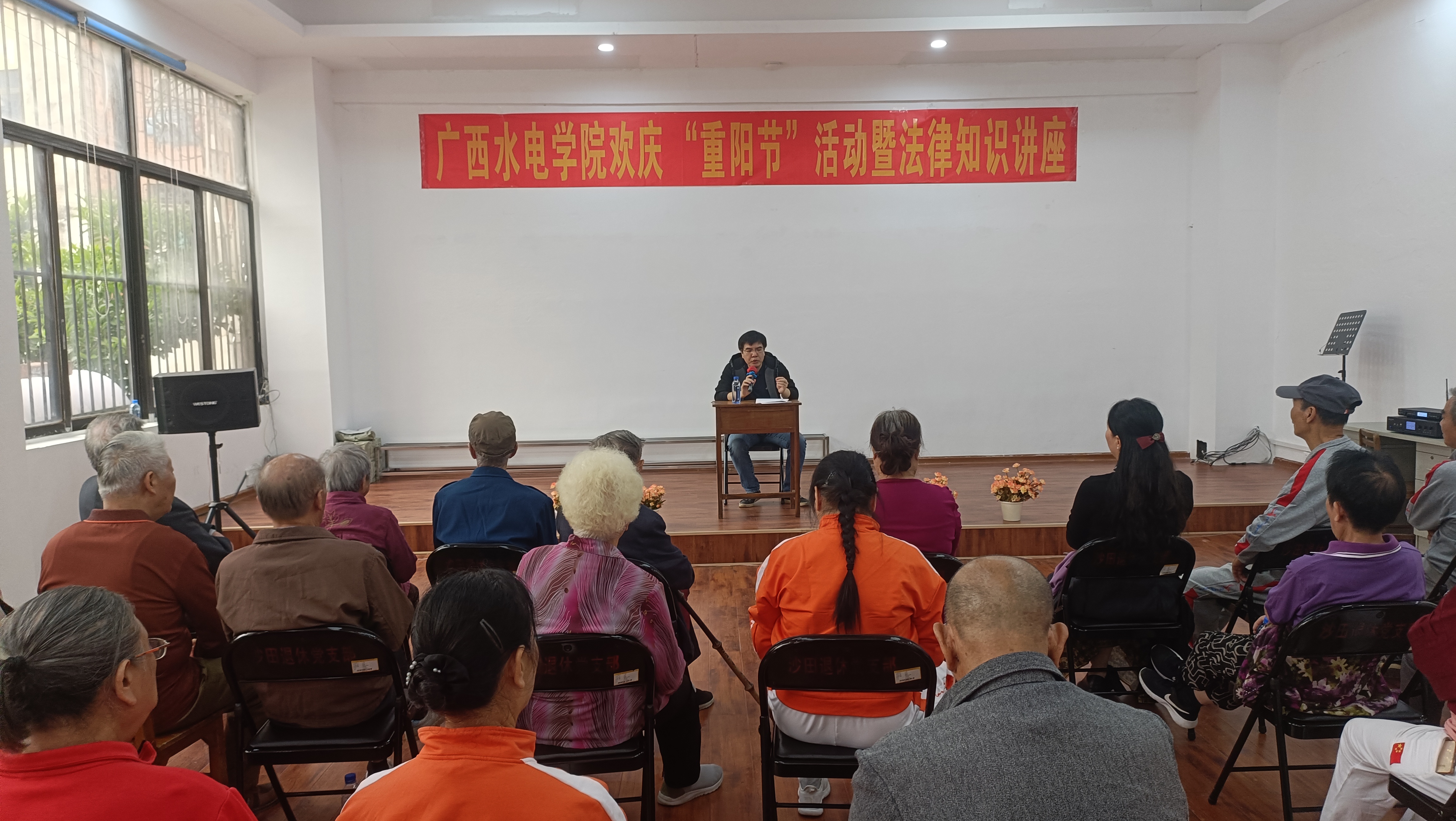 [本网讯]10月23日,学校工会在大沙田校区开展重阳节活动暨 “法律知识讲座”,邀请学校法律顾问,北京市盈科(南宁)律师事务所李哲林律师给退休教职工宣讲法律知识。