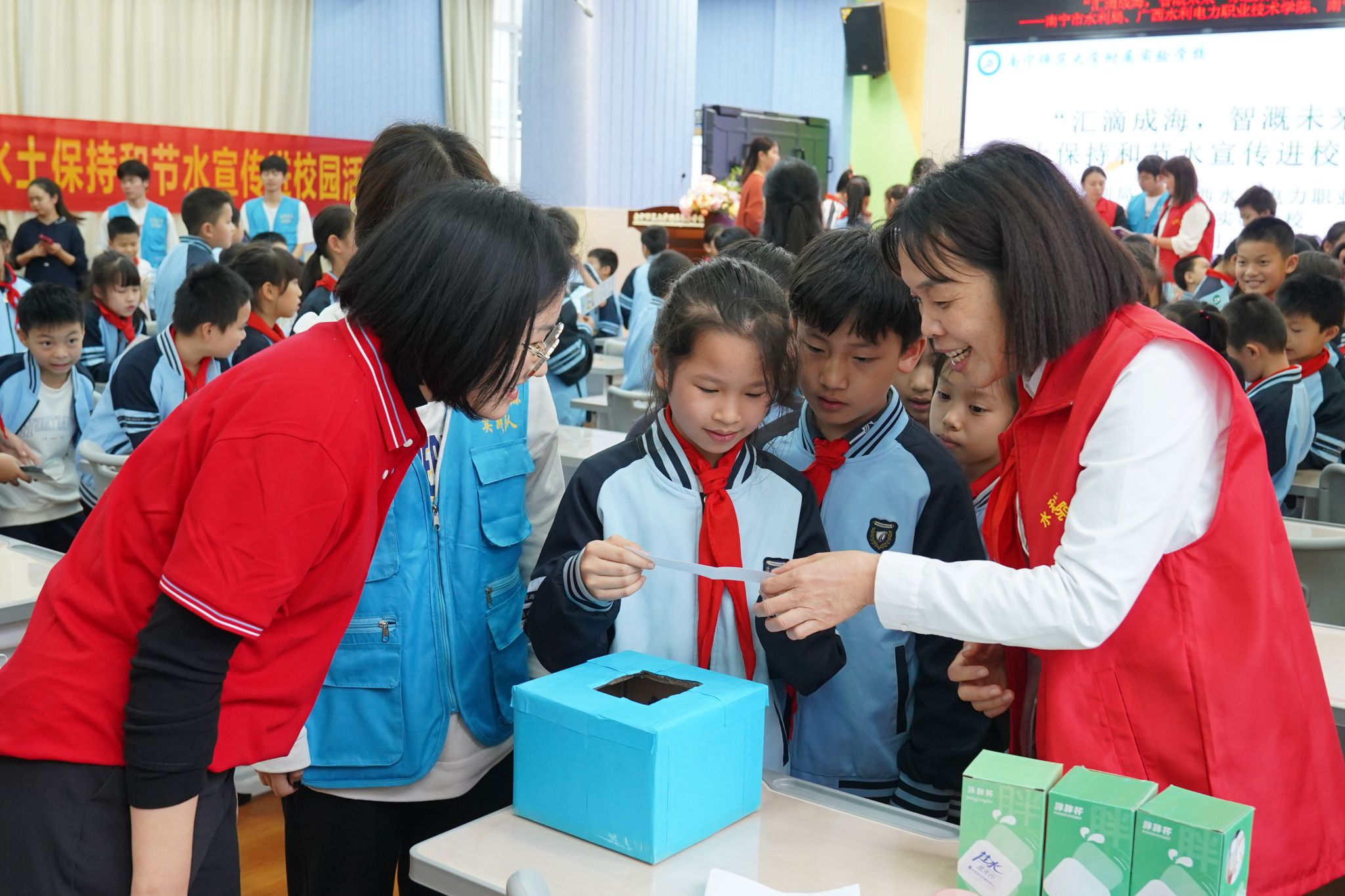 [本网讯]3月22日,在第三十二届“世界水日”,第三十七届“中国水周”来临之际,学校党委宣传部党支部、工会党支部、水利工程学院党总支携手南宁市水利局,共同走进南宁师范大学附属实验学校,成功举办了以“汇滴成海,智溉未来”为主题的水土保持和节水宣传进校园活动。此次活动旨在通过科普教育,提升青少年对水资源保护的认识,培养节水意识,传递绿色发展理念。