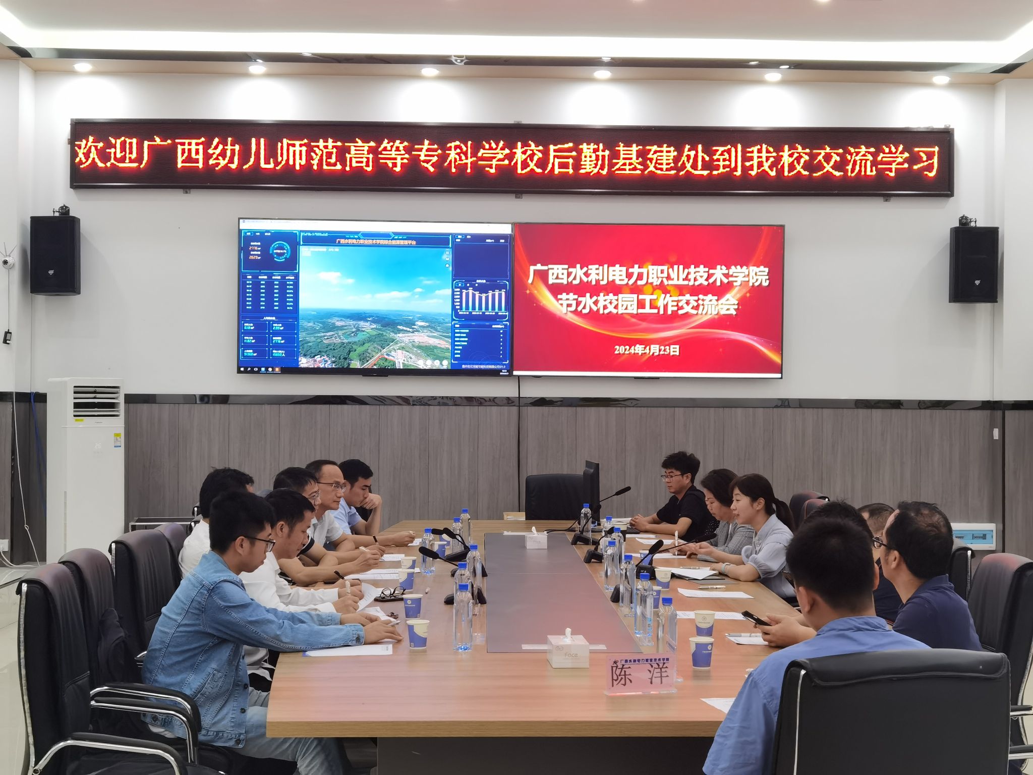 2024年4月23日上午,广西幼儿师范高等专科学校后勤基建处处长邓博倡一行6人到pp电子考察交流并开展座谈。后勤管理处(保卫处)处长余娜,副处长陆扬、韦素娟及相关科室人员陪同交流。座谈会由后勤管理处(保卫处)处长余娜主持。