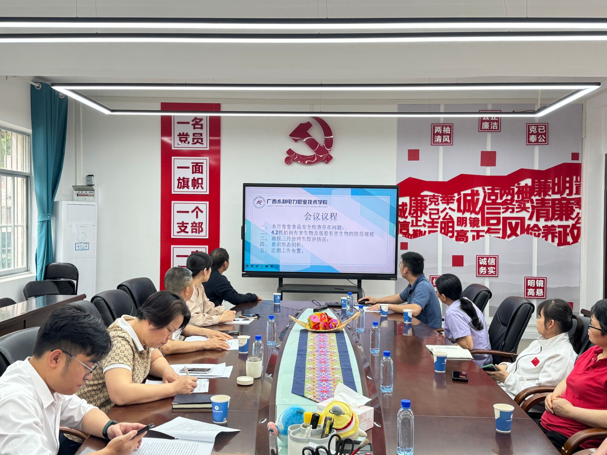 会上,两校区食品安全员梁竣杰、甘冬生分别对3月食堂检查整改的问题及师生投诉情况进行通报。膳食科科长李兴开总结3月份工作,布置4月重点工作。与会人员集中观看了《校园食品安全:有害生物防治片》视频。