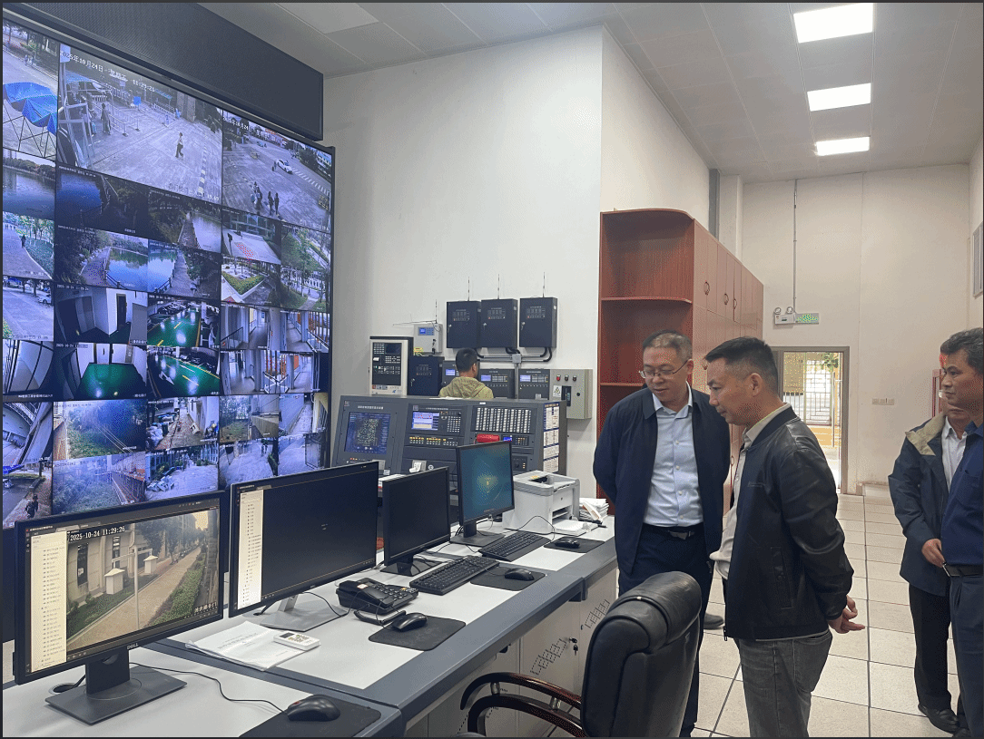 调研期间,pp电子一行实地考察了广西职业技术学院大门门卫及人员管理、应急指挥中心、消防控制室等。(彭婕英/图文)