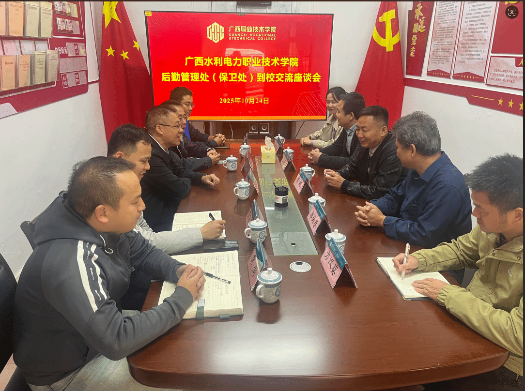 [本网讯]10月24日上午,学校后勤管理处(保卫处)副处长肖翔率队赴广西职业技术学院学习交流。广西职业技术学院安全稳定处处长邓满意热情接待pp电子一行。