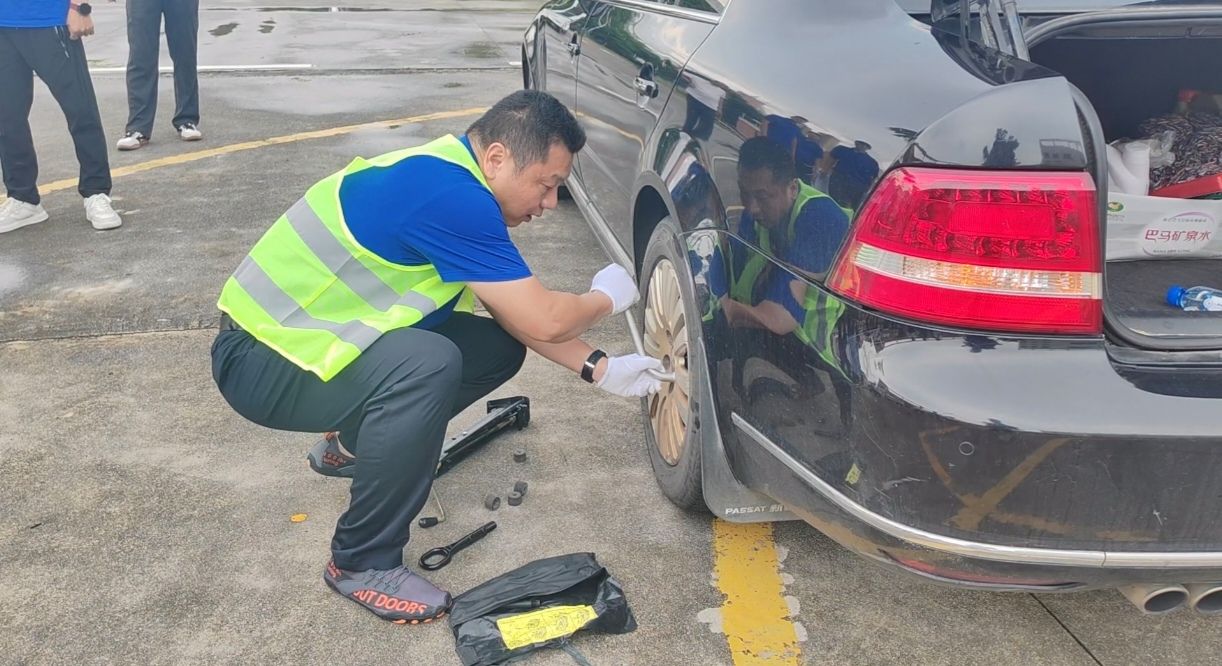 活动在紧张刺激的校企驾驶员技能大比拼中拉开帷幕。来自双方的驾驶员们齐聚交通工程学院实训场外,参与倒车入库和更换备胎两个项目的角逐。校、企各派出一支由两人组成的队伍,每人分别参加一个项目,最终成绩汇总计算总分。比赛现场,驾驶员们凭借精湛的技术和丰富的经验,展现出了极高的专业素养,充分体现了对安全驾驶技能的重视与追求。