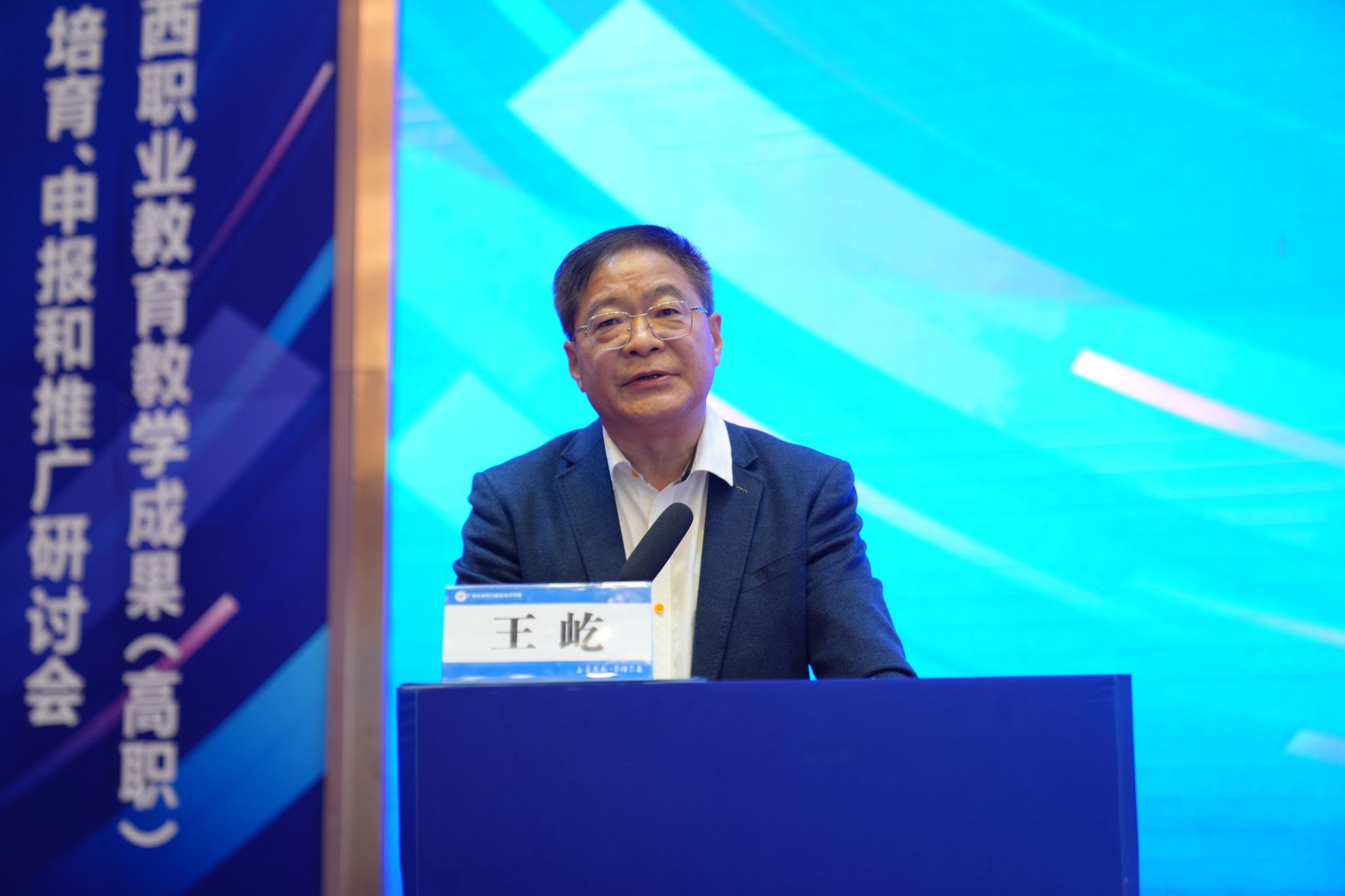 广西职业教育发展研究中心常务副主任王屹教授做《广西职业教育教学成果奖的现状、问题与策略》主旨报告,他从获奖概况、成果申报存在问题、成果申报策略、成果案例分析四个方面进行了全面的分析和梳理。