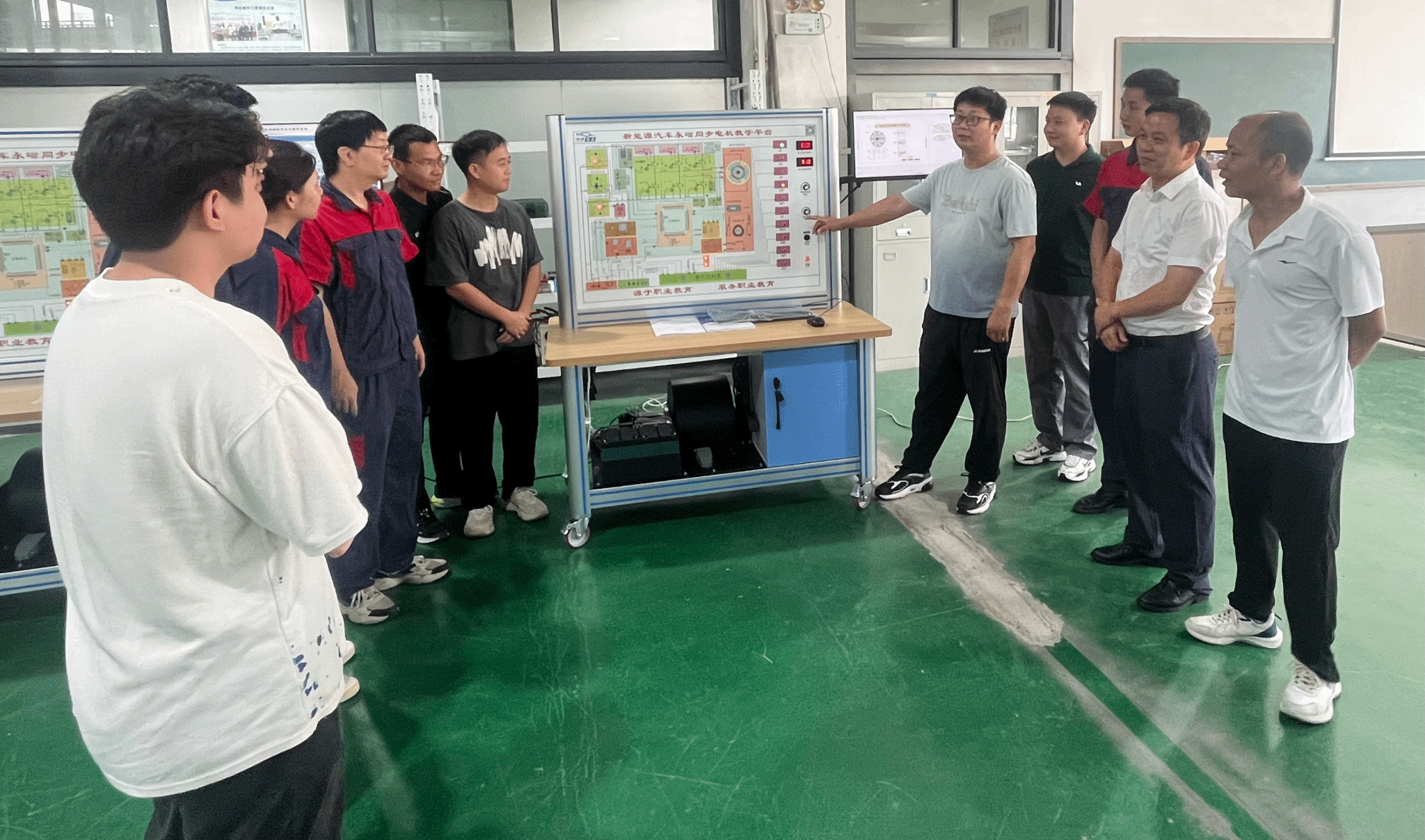 [本网讯]为提升交通工程学院教师队伍技术技能水平,紧跟汽车行业的前沿技术,锤炼“双师”素质能力。6月9日,交通工程学院在里建校区汽车实训楼成功举行了新能源汽车技术的专项培训活动。交通工程学院副院长贺敏超,实验实训中心、新能源汽车教学团队、汽车检测与维修教学团队的部分骨干教师参加了此次培训。