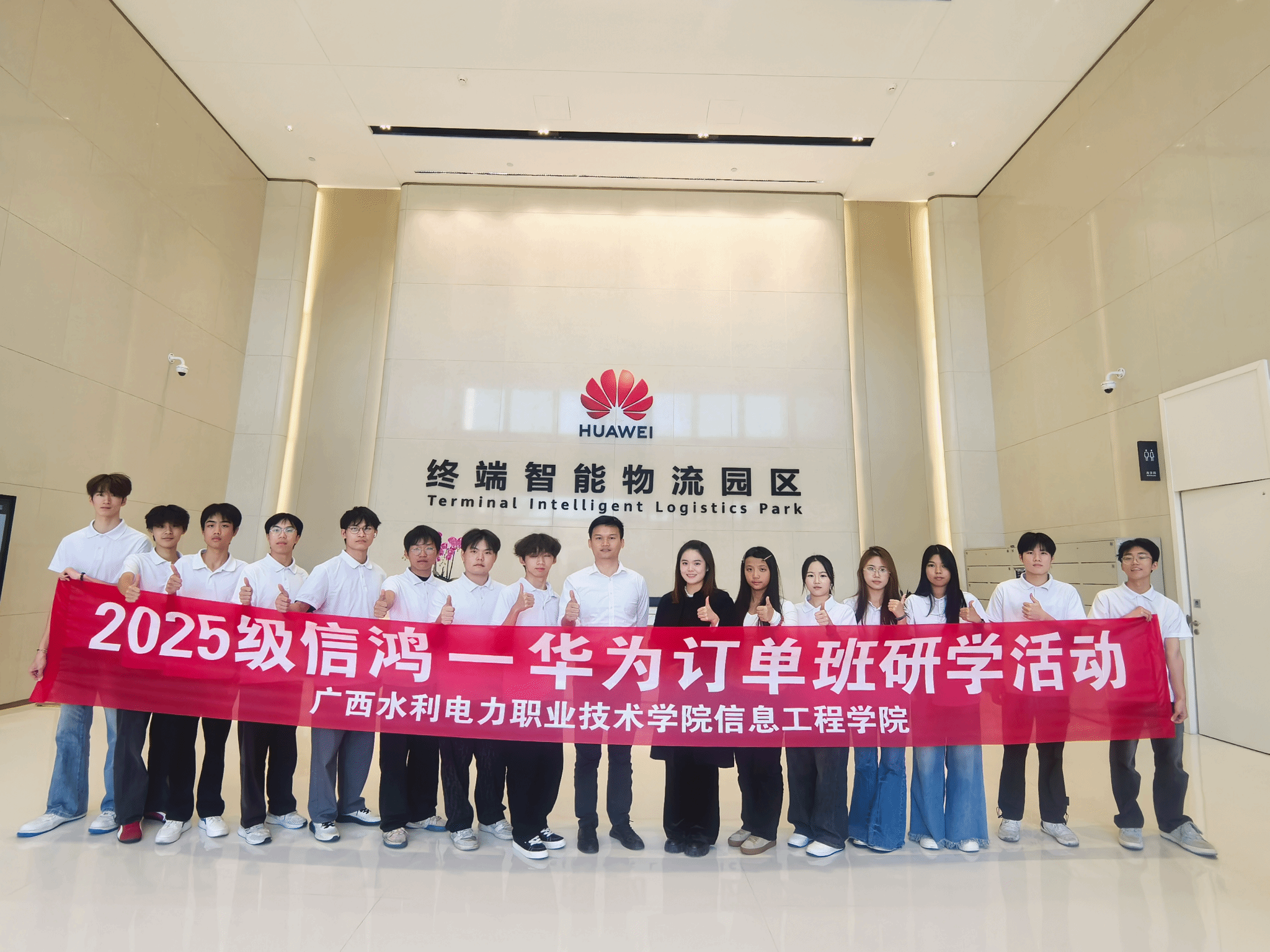 研学师生在华为终端智能物流园合影